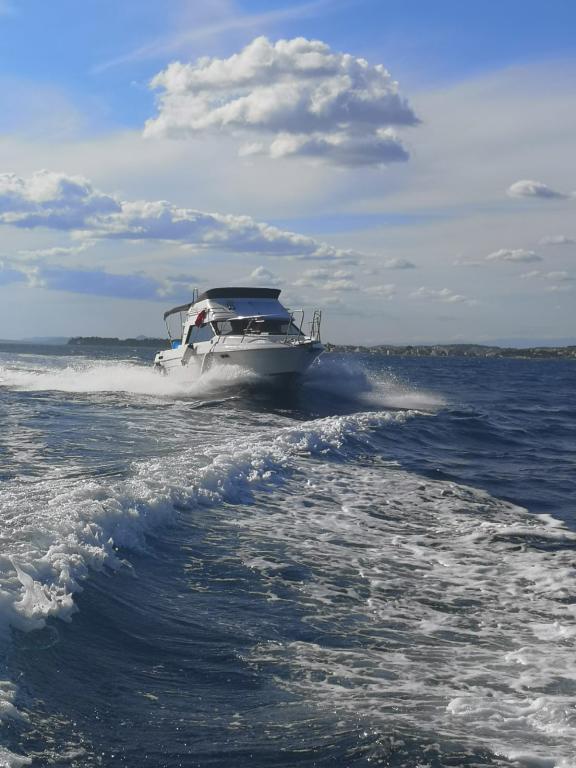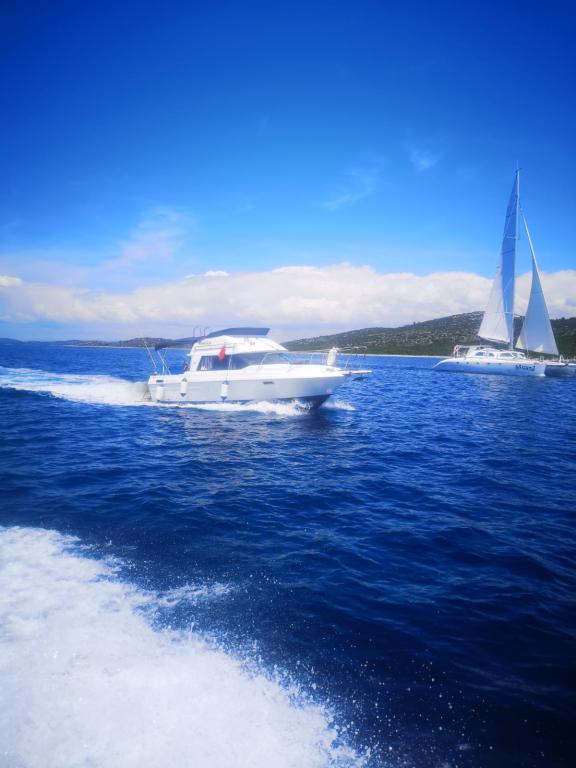 Taxe de sejour est inclus dans le prix.Apéritif de bienvenue, barbecue en plein air, excursions en bateau organisées avec un skipper. Dans le camp voisin, des pédalos peuvent être loués et des toboggans aquatiques peuvent être appréciés. Plusieurs excellents restaurants proposant des spécialités dalmates se trouvent à proximité.