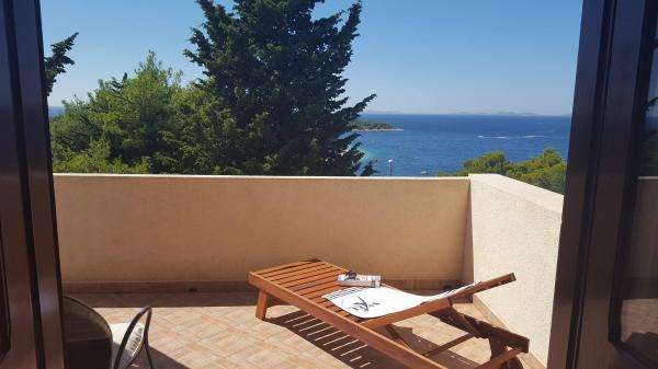 Taxe de sejour n'est pas incluse dans le prix.Super hébergement! Un appartement propre et magnifique avec une vue sur la mer et une belle grande terrasse, qui ne fait pas trop chaud. M / s. Iva est une propriétaire très sympathique et serviable de l'appartement, qui viendra toujours à votre aide. L'appartement est très proche de la plage où l'on se baigne. Nous le recommandons à tout le monde. L'année prochaine, nous viendrons pour la quatrième fois.
