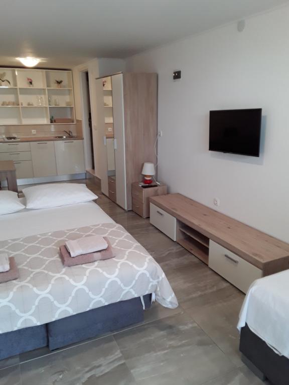 Appartements entièrement équipés dans un quartier calme, deuxième rangée de la mer, à seulement 100 mètres de la plage. Les appartements ont tout pour profiter de vos vacances et vous sentir chez vous, le parking est situé en face de la maison. Les appartements sont à 28 km de Sibenik et à 35 km du parc national, et à 30 km de l'aéroport de Split (Resnik).