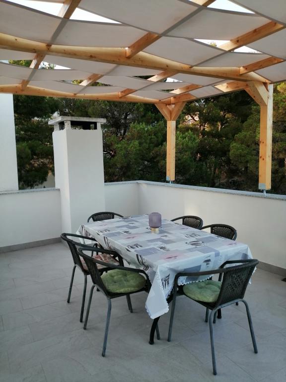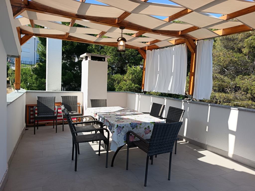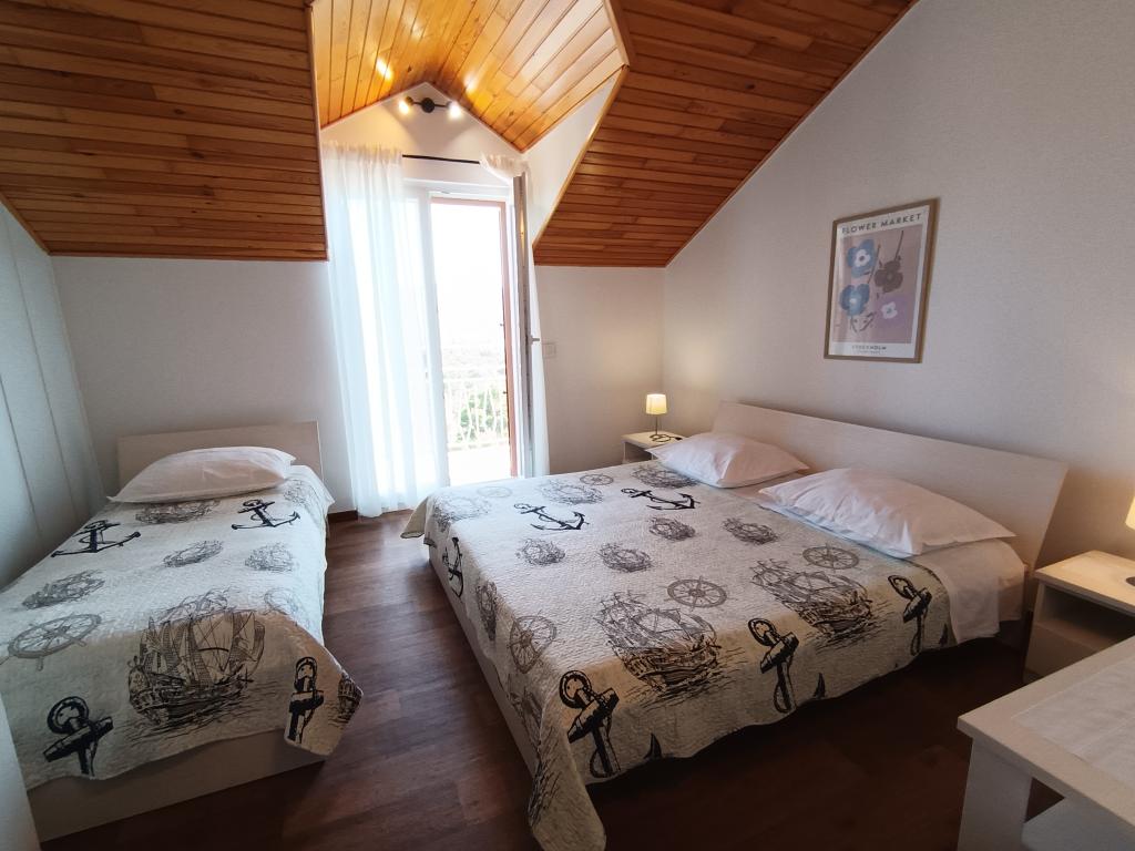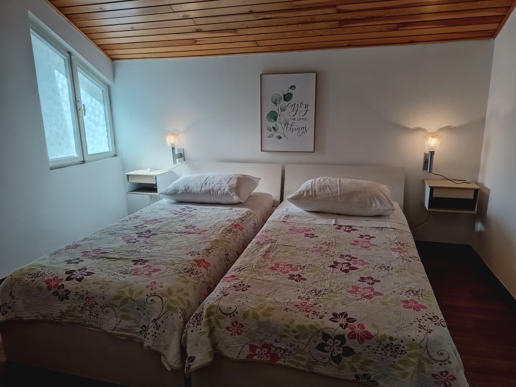 L'établissement comprend deux appartements entièrement meublés, équipés et climatisés dans la nouvelle partie de Primošten pour un hébergement de 4 à 8 personnes. Appartement 6 plus 2 adapté aux vacances communes de deux familles. L'appartement dispose de deux salles de bains avec une cuisine spacieuse, de trois grandes chambres, d'une grande terrasse et d'un balcon avec une belle vue sur la mer et la vieille ville de Primošten. L'appartement 4 plus 1 est situé au rez-de-chaussée d'une maison familiale avec une entrée indépendante, il contient deux chambres, une salle de bain et WC séparés, une cuisine, et une véranda pour des vacances en famille. Devant l'appartement il y a un coin salon et une grande cour clôturée. Les appartements disposent d'un parking sécurisé devant la maison. Il se trouve à 10 minutes à pied du centre ville et à 5 minutes à pied de la première plage. Les animaux jusqu'à 5 kg sont autorisés moyennant un supplément de 10 euros/nuit. En plus de ces deux appartements, nous louons une maison de vacances avec piscine KATE&MARE, située à Zagora dalmate dans la ville de Vrgorac, et également proposée sur le site Internet des Appartements Vrgorac. Nous attendons avec impatience votre arrivée !