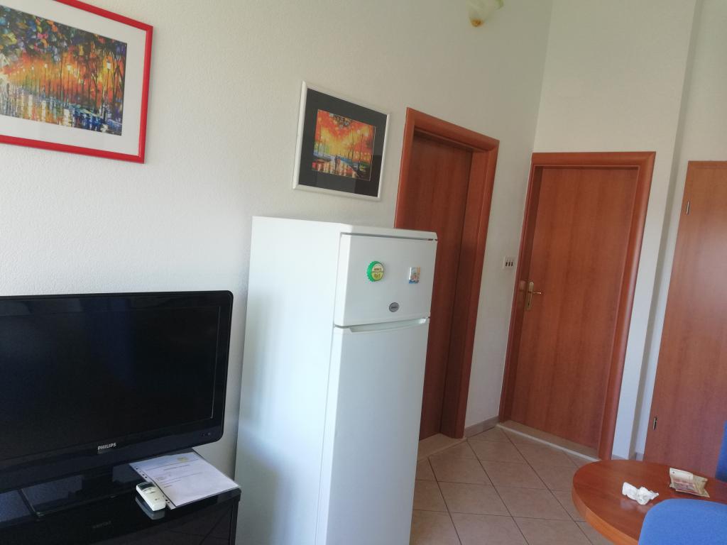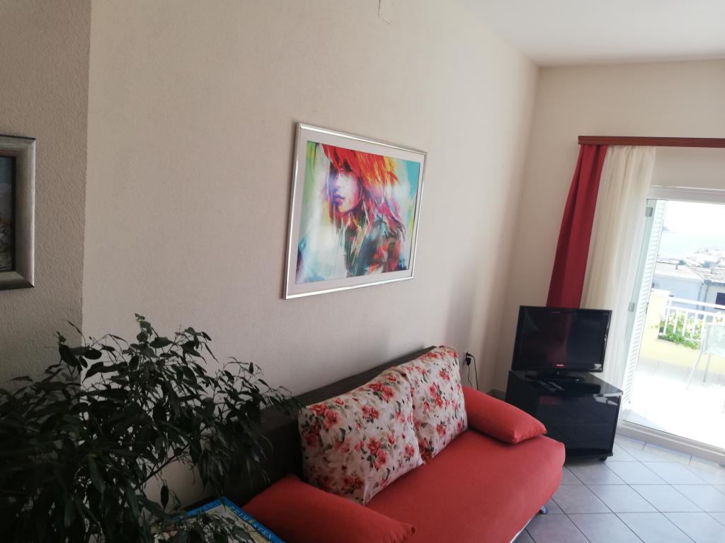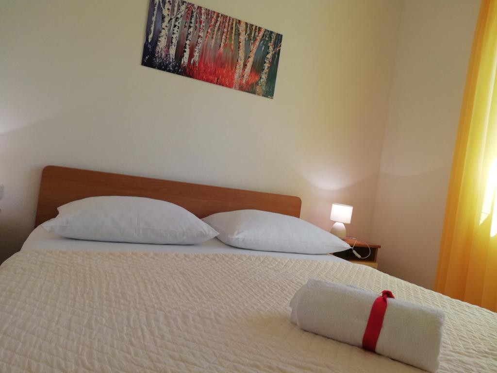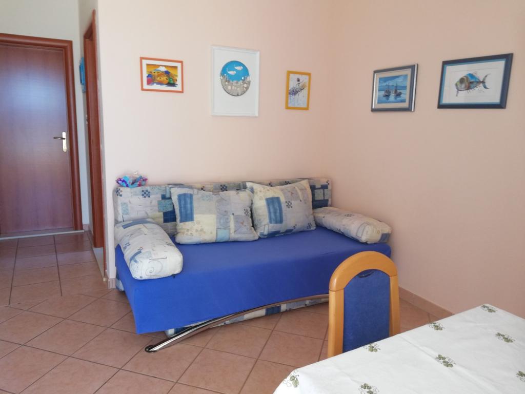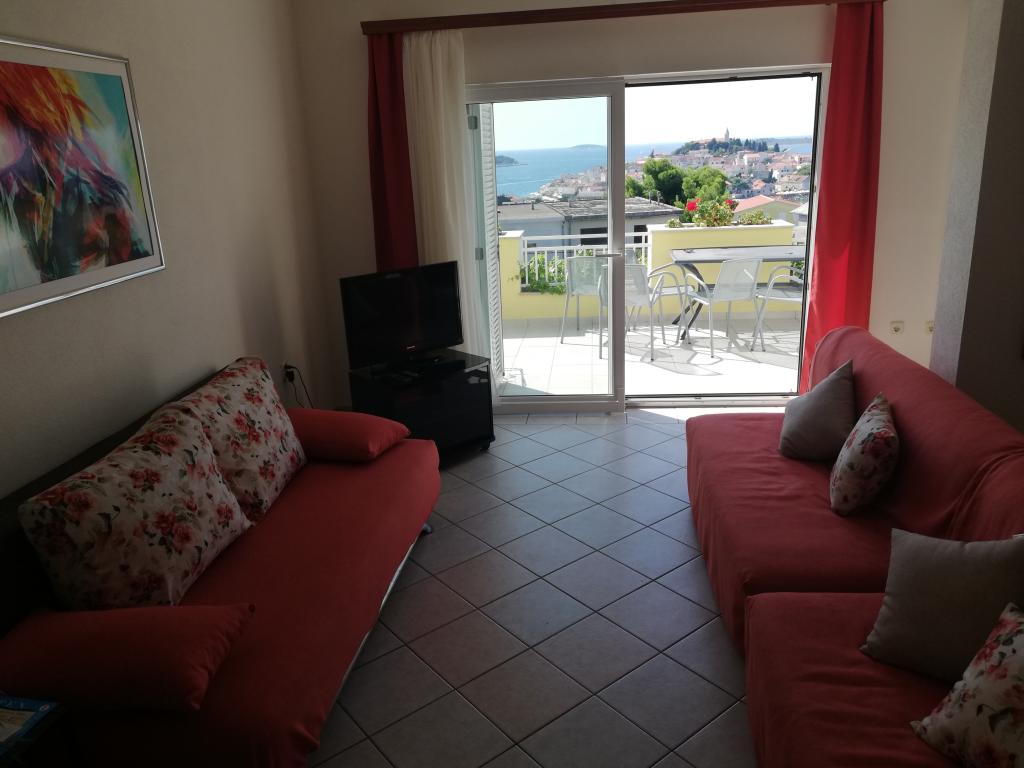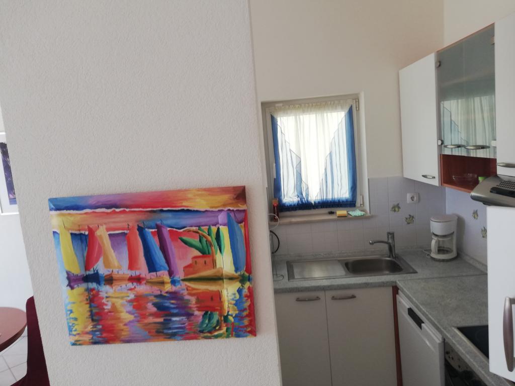 Appartement confortable et joliment décoré, situé sur une petite élévation au-dessus de la route chez le chiot Primo. L'appartement et la terrasse offrent une vue magnifique sur la mer et la vieille ville. Il se trouve à seulement 8 minutes à pied de la plage et du centre-ville. L'appartement comprend une chambre pour deux personnes, une cuisine avec salon, salle de bain et terrasse. Dans le salon, il y a un canapé-lit pour deux personnes. Convient aux couples mariés avec enfants en bas âge. L'appartement est situé au 1er étage.