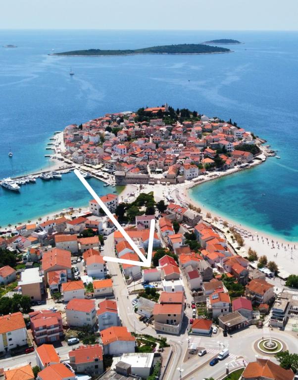 L'appartement moderne de deux étages Miamare à Primosten est à 100 mètres du centre-ville et de la plage (1-2 min à pied).Il se compose d'une cuisine, d'un salon et de toilettes au rez-de-chaussée et de deux chambres et d'une salle de bains au premier sol. Il est équipé de trois climatiseurs et d'une connexion Internet.Une place de parking gratuite est prévue devant l'appartement.Toutes les commodités essentielles sont situées à proximité immédiate à une distance de moins de 100m (boutique, pharmacie, marché, restaurants, boucherie , bureau de poste...).