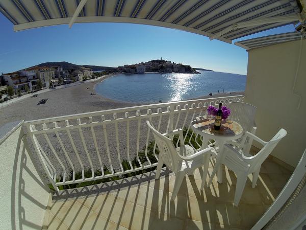 Les appartements More sont situés en plein centre de Primošten. Les appartements sont situés sur la plage de Mala Raduča, première rangée de la mer, et se composent de 8 unités d'hébergement de différentes capacités. À proximité immédiate de l'appartement se trouve un complexe hôtelier avec des installations de divertissement, telles que des courts de tennis, des terrains de volley-ball et un mini-golf. Les appartements sont entourés de nombreuses installations de divertissement adaptées aux enfants et sont situés à proximité de divers cafés et restaurants. Un magasin, un bureau de poste, des distributeurs automatiques de billets, un bureau de change et une banque sont tous situés à moins de 100 mètres de l'appartement. Vous vivrez l'atmosphère de l'été, du plaisir et de la Méditerranée dans nos appartements avec tout votre être, accompagné du chant des vagues et de la brise d'été. La famille Pancirov attend avec impatience votre arrivée.