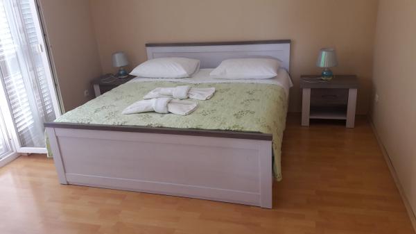 L'appartement A4 dispose de deux chambres doubles, de deux salles de bains, d'une cuisine, d'un salon et d'un balcon. Il est situé au deuxième étage de la maison familiale. Nous avons un parking pour une voiture. L'appartement A2 se compose d'une chambre, d'une cuisine et d'une salle de bain. Il est situé au rez-de-chaussée d'une maison familiale. Nous disposons d'un parking sécurisé pour une voiture devant l'appartement. La propriété est située à 5 minutes à pied de la plage, du centre et des restaurants dans une rue calme à sens unique. Le prix de l'appartement comprend la taxe de séjour.