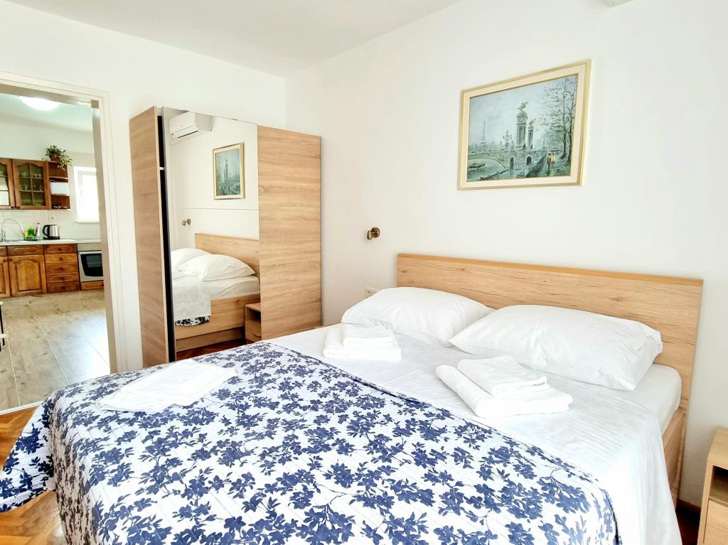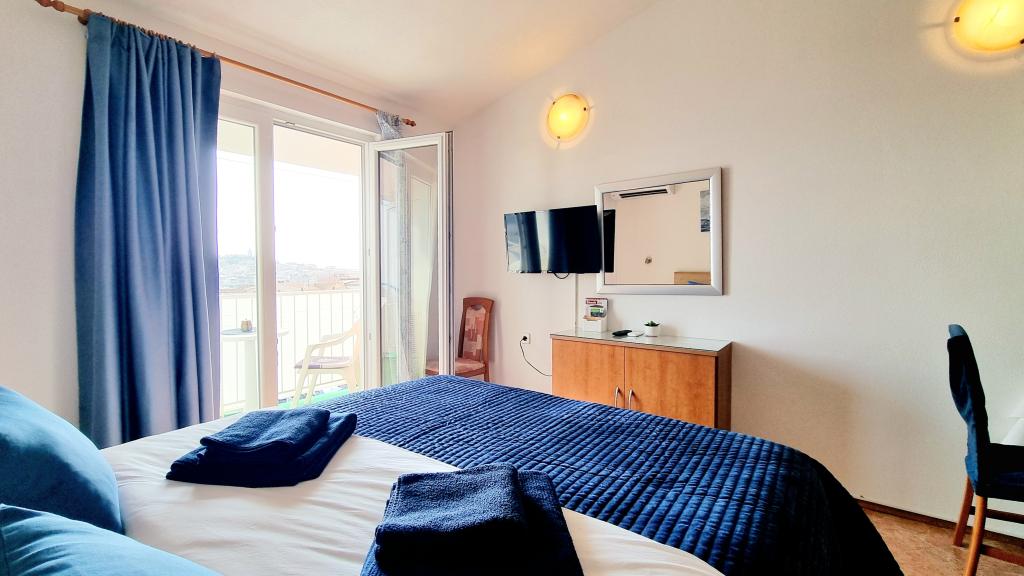Excellent hébergement avec une vue parfaite sur la vieille ville et la mer. C'est propre, paisible, bien équipé avec un lit confortable et dispose d'un balcon offrant une vue magnifique. La climatisation rend le séjour encore plus agréable. Les hôtes sont gentils et serviables, un parking est disponible et l'emplacement est parfait, proche de la plage et de la vieille ville. Hautement recommandé!