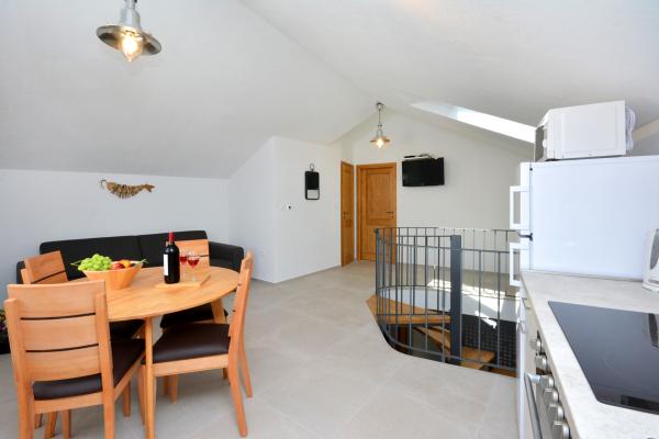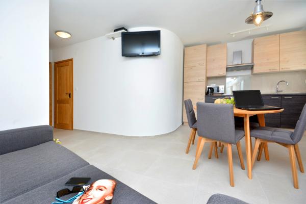 Appartement moderne équipé dans le centre de la vieille ville de Primošten. Oubliez la conduite d'une voiture, tout ce dont vous avez besoin pour passer d'agréables vacances se trouve à moins de 200 m. De belles plages cristallines se trouvent à 50 m de l'appartement, des commerces et de nombreux restaurants, cafés et autres installations se trouvent à proximité immédiate (10 m). Une place de parking est mise à votre disposition et incluse dans le prix, le transfert vers l'appartement au centre s'effectue avec une papamobile électrique. Deux appartements peuvent être reliés en un grand appartement à deux étages pour un hébergement confortable pour max. 6 (six) personnes.