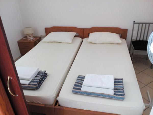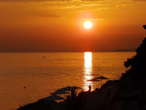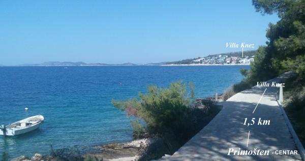 Excellent rapport qualité / prix pour un excellent emplacement. L'hôtel est situé à 10 mètres de la plage. Les deux sont orientés vers le sud-ouest, ce qui procure non seulement un rendement solaire optimal, mais également une superbe vue sur les couchers de soleil, que l’on peut apprécier depuis le grand balcon. La promenade jusqu'au centre prend environ une demi-heure à pied, mais elle est si belle qu'elle devient une expérience en soi. Les exploitants de la villa Knez sont sympathiques sans être envahissants, comme je l’ai malheureusement souvent expérimenté en Croatie.