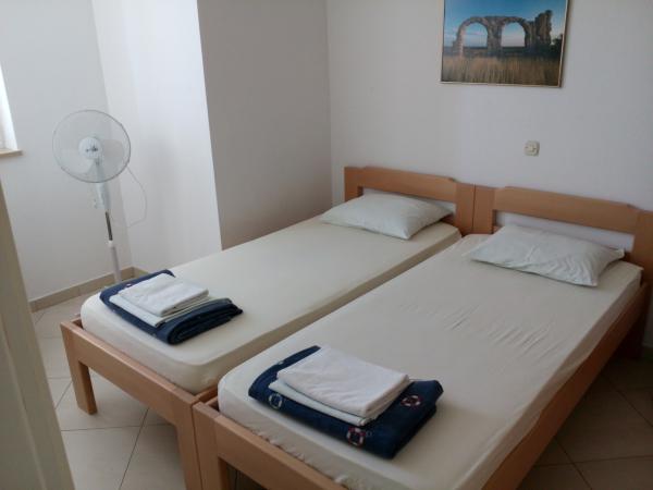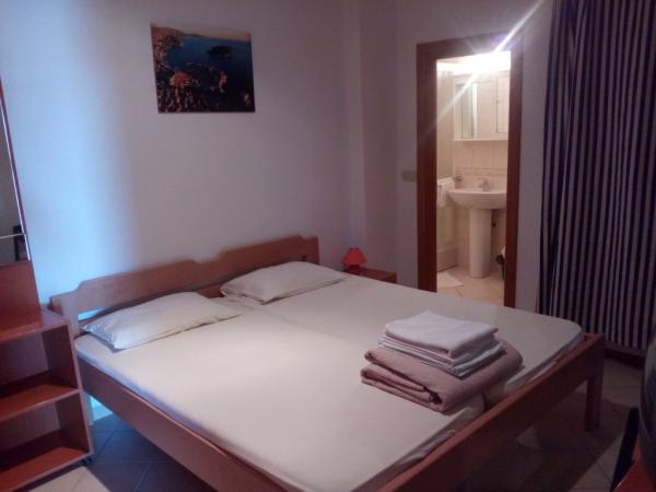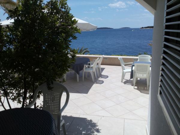 Un endroit merveilleux pour ceux qui recherchent la paix pour se détendre et en même temps à distance de marche de la mer depuis le centre-ville, où se trouvent des magasins et des restaurants. Mer littéralement à travers la route. Vous pouvez choisir d'approcher la mer progressivement et directement dans les profondeurs. Le logement en lui-même est satisfaisant et vous avez tout ce dont vous avez besoin, mais je tiens à souligner qu'il s'agit d'une belle grande terrasse avec des chaises longues, qui offre la plupart du temps de l'ombre et une vue sur la mer et le centre-ville en arrière-plan. Les propriétaires sont très gentils et arrangeants, nous les remercions beaucoup. Nous reviendrons ici régulièrement.