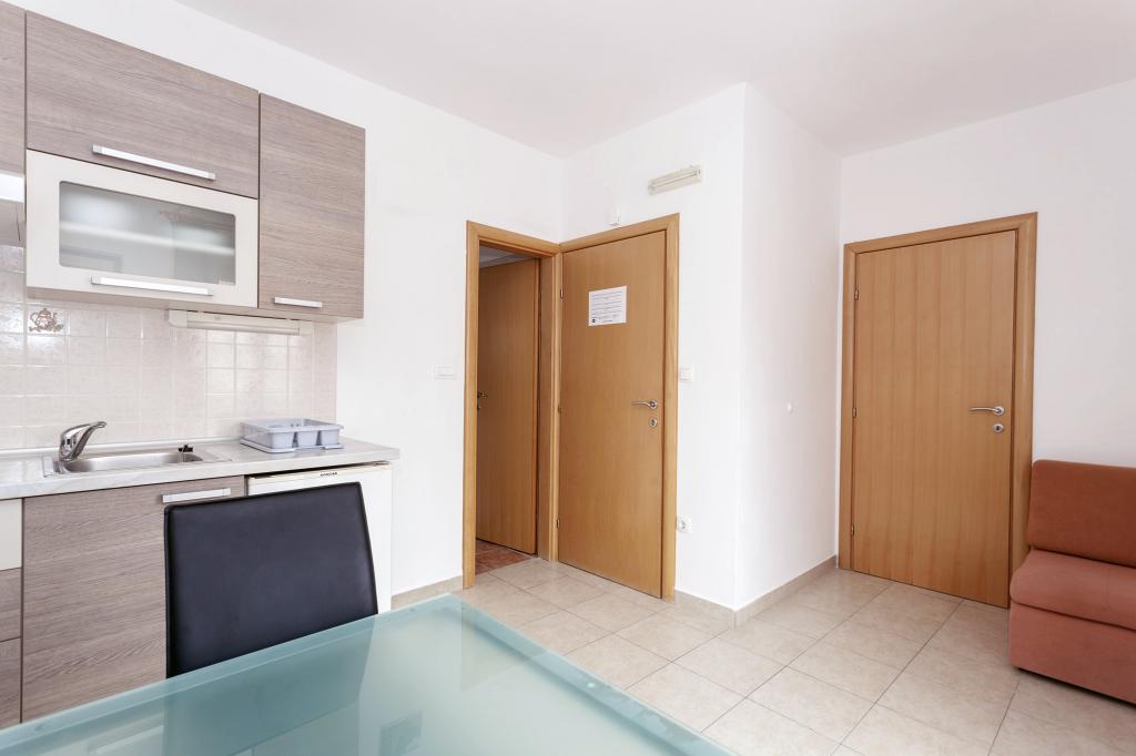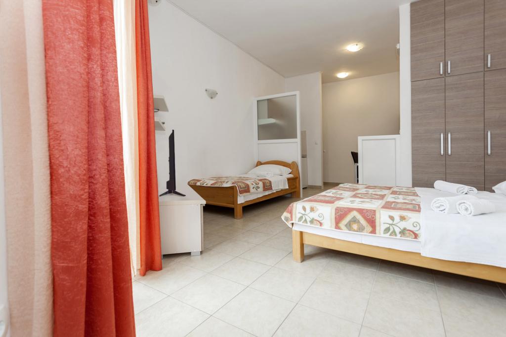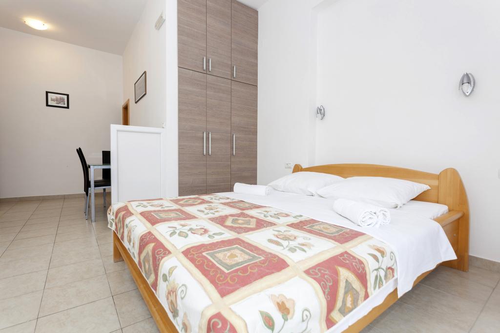 L'appartement est très bien équipé, spacieux, propre et bien rangé. Chaque appartement dispose d'une machine à laver. Le propriétaire est très sympathique et serviable. L'emplacement est excellent. À proximité (max 10 min à pied) a plusieurs plages, des restaurants, des boutiques. Parking en face des suites, coffre-fort et toujours garantie. Notre seul problème raclait lit.