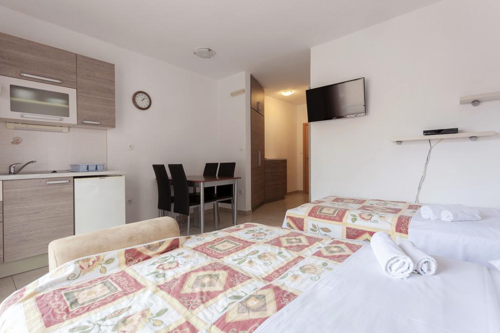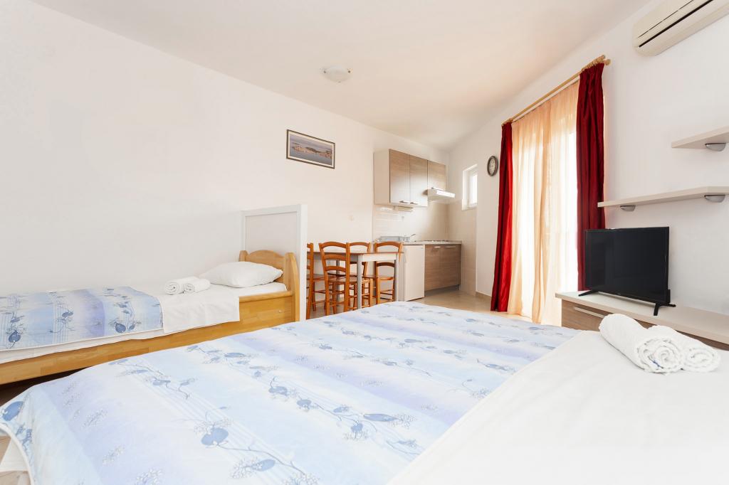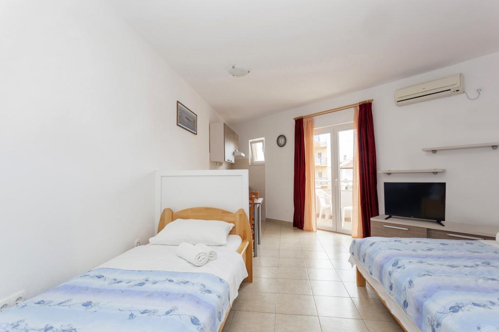 Nous avons apprécié le séjour et l'appartement. Appartement - tout en très bon état, propre, soigné, frais, lit confortable, la climatisation. Bon emplacement - très proche de la plage et non pas dans la foule, mais les touristes roulant. Une ville charmante, une base à d'autres domaines tels que Schibenik ou Trogir. Propriétaire attentif, aide non orienté. Je recommande.
