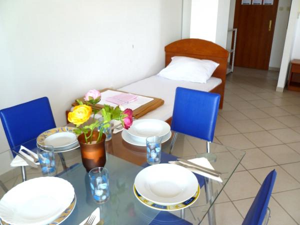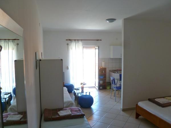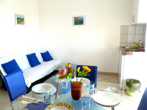 L'appartement était propre et bien rangé, la vue depuis la terrasse indescriptible, le café du matin avec une telle vue, vraiment magique. Le patron et son frère sont très arrangeants, des gens sympas. Proche de la mer, du centre, de la plage, des commerces, des pharmacies, tout est à portée de main. Je pense que pour un prix aussi abordable, compte tenu de la proximité et de la vue depuis la terrasse qui descend, ça vaut vraiment le coup de venir. Nous reviendrons certainement!
