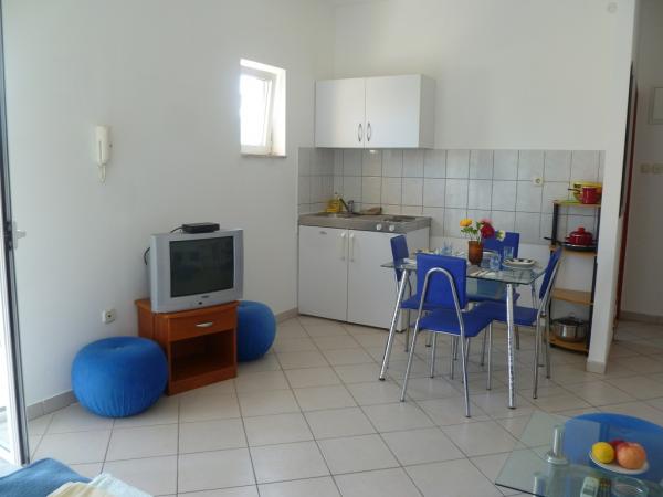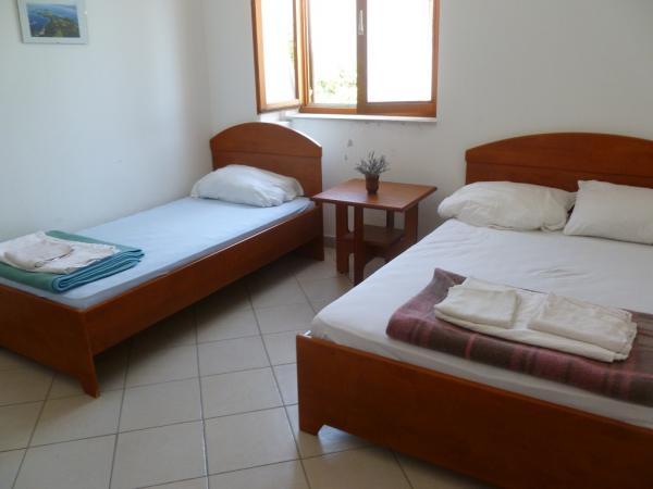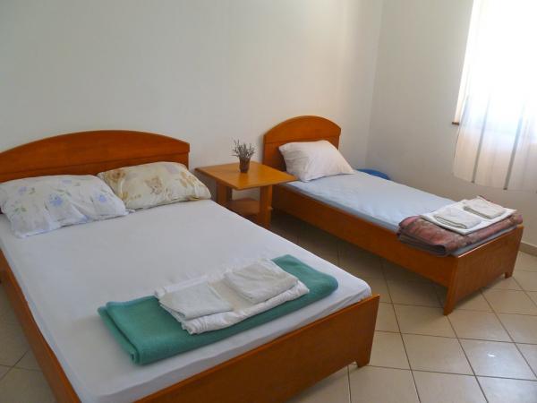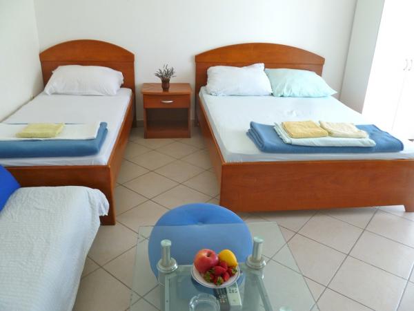 Villa Maria est situé dans le centre de Primosten, de belles plages (gravier, de sable et de pierre) est de 50 à 100 mètres. Au sommet se trouve une grande terrasse avec une belle vue panoramique de Primosten et des plages. Villa dispose de huit studios, appartements de deux chambres, toutes bien équipées et ont trois étoiles, qui garantissent un confort et accueil chaleureux. Les appartements sont équipés avec kitchenette, réfrigérateur, TV satellite, fourni avec une vue sur la mer. Studios avec trois lits + lit auxiliaires, deux grandes suites ont cinq ou six lits et deux supplémentaires. Chaque appartement a sa propre place de parking. Commerces, poste, banque, boulangerie et les commerces sont à moins de 100 mètres.