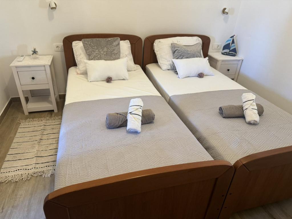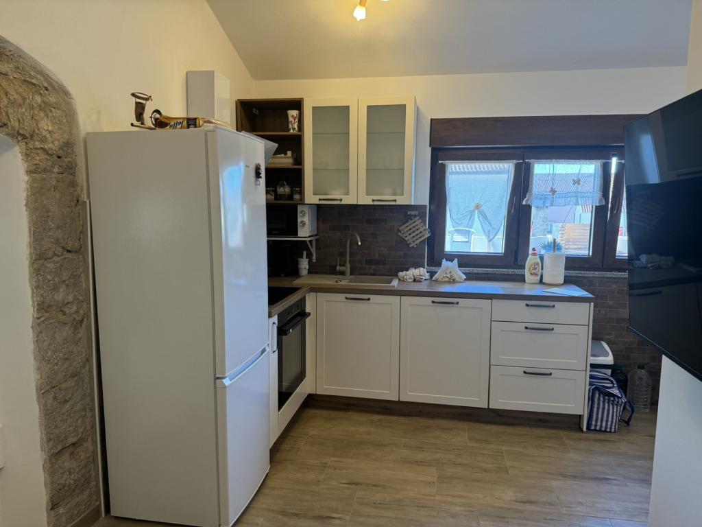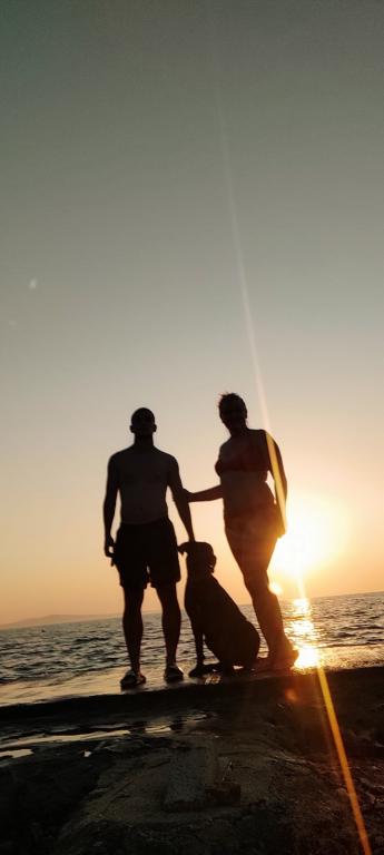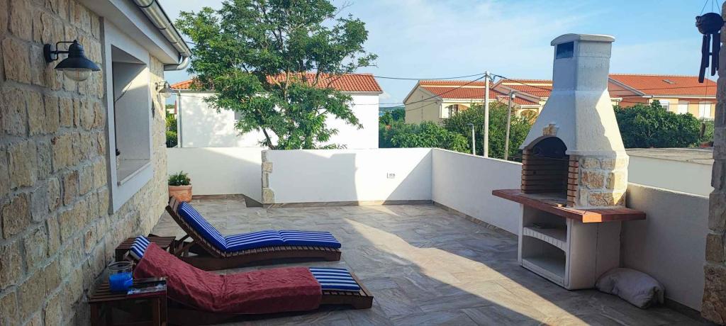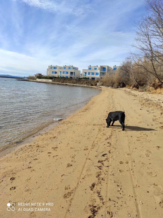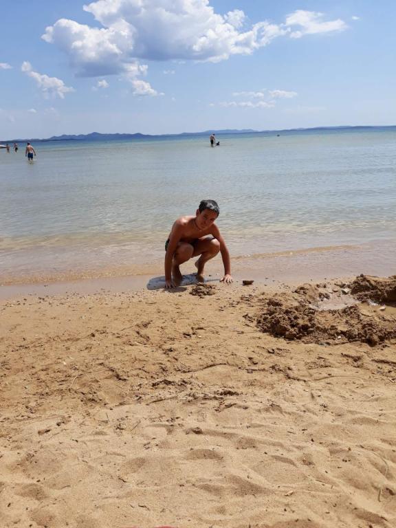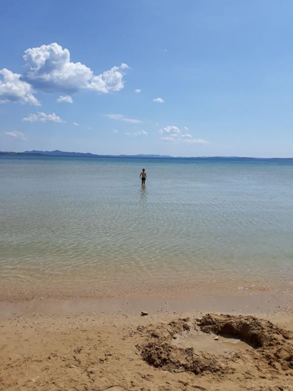 Appartement de deux pièces nouvellement décoré de style rustique avec cuisine, salon et salle de bain. Une chambre dispose d'un lit 160x200 et l'autre chambre de deux lits 90x200 et dans le séjour il y a un lit d'appoint (un canapé convertible). Les deux chambres, la cuisine et le salon sont climatisés. Il y a une télévision dans chaque chambre. La salle de bain dispose d'une douche et d'un lave-linge. L'appartement est situé au 1er étage, devant lequel s'étend sur toute la longueur la terrasse de 50 m2, partiellement couverte. Sur la terrasse il y a un barbecue, des transats, une table et des chaises... A l'entrée du bâtiment au rez-de-chaussée il y a une terrasse d'environ 30 m2 avec une douche solaire extérieure. L'appartement dispose également de trois places de parking devant. l'entrée. Les plages environnantes sont sablonneuses et peu profondes, adaptées aux petits enfants et aux non-nageurs, ou vous pourrez profiter des piscines plus intimes en pierre ou en béton le long de toute la promenade. Sur la promenade susmentionnée, il y a un endroit où vous pourrez observer, apprécier et photographier la scène unique du coucher de soleil sur la mer. A proximité se trouvent de nombreux sentiers de randonnée et pistes cyclables, des bars de plage, des locations de bateaux, etc., la ville historique de Nin avec la célèbre boue curative de Nin est à environ 3 km, TN Zaton avec de nombreuses attractions touristiques est à environ 3 km, Zadar est à environ 3 km. À 25 km.