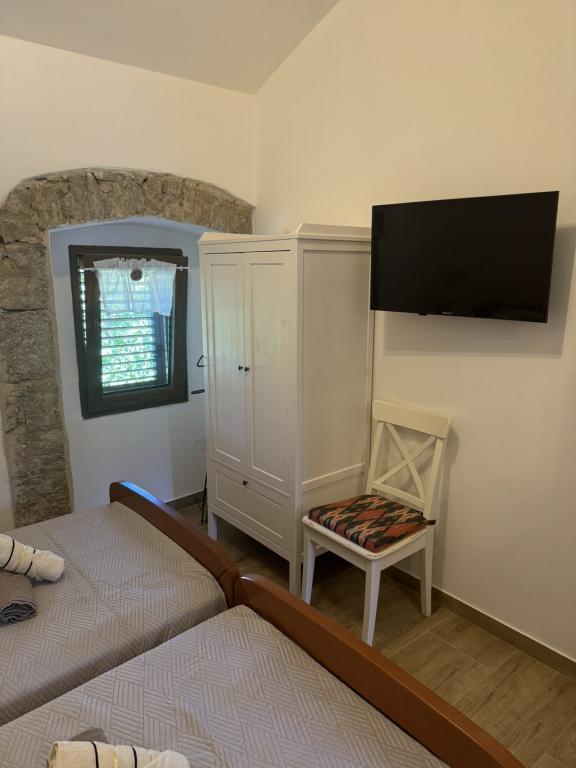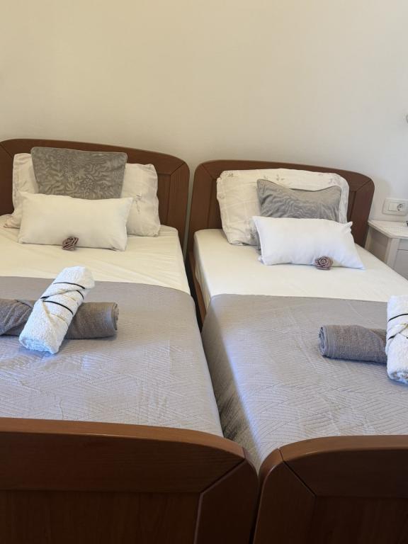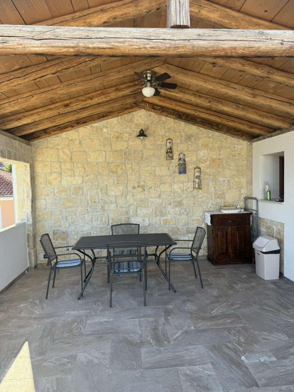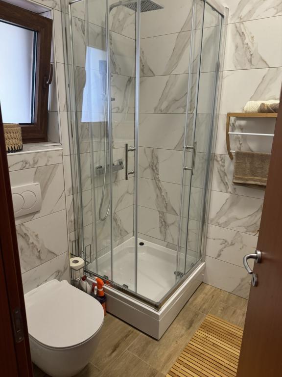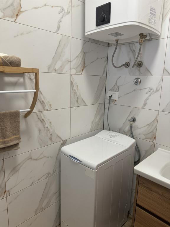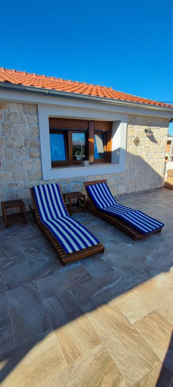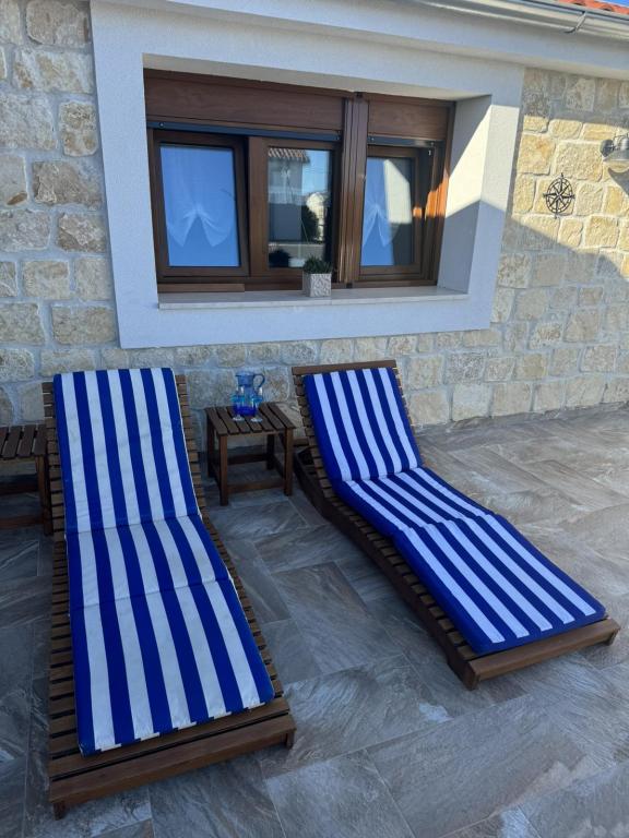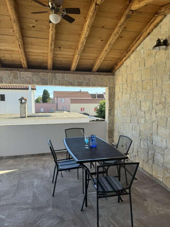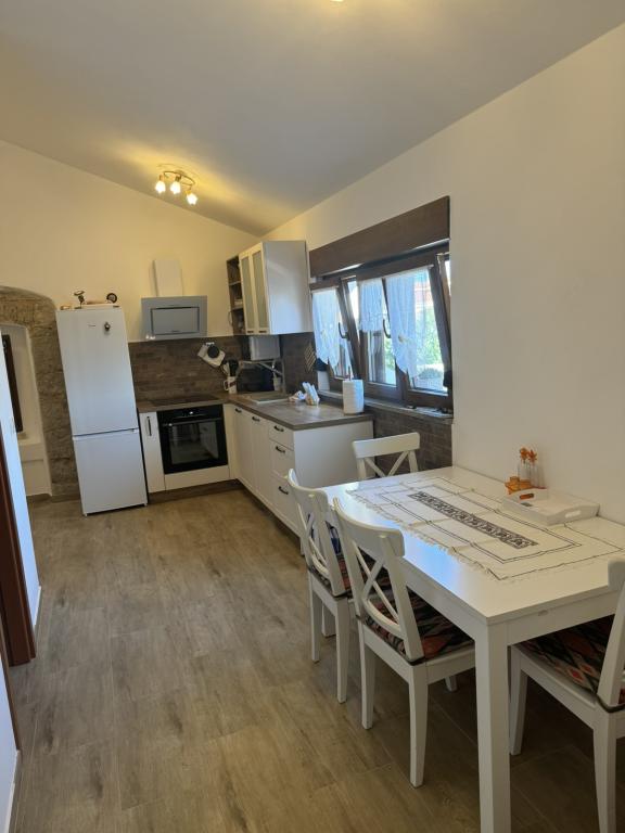 Appartement de deux pièces nouvellement décoré de style rustique avec cuisine, salon et salle de bain. Une chambre dispose d'un lit 160x200 et l'autre chambre de deux lits 90x200 et dans le séjour il y a un lit d'appoint (un canapé convertible). Les deux chambres, la cuisine et le salon sont climatisés. Il y a une télévision dans chaque chambre. La salle de bain dispose d'une douche et d'un lave-linge. L'appartement est situé au 1er étage, devant lequel s'étend sur toute la longueur la terrasse de 50 m2, partiellement couverte. Sur la terrasse il y a un barbecue, des transats, une table et des chaises... A l'entrée du bâtiment au rez-de-chaussée il y a une terrasse d'environ 30 m2 avec une douche solaire extérieure. L'appartement dispose également de trois places de parking devant. l'entrée. Les plages environnantes sont sablonneuses et peu profondes, adaptées aux petits enfants et aux non-nageurs, ou vous pourrez profiter des piscines plus intimes en pierre ou en béton le long de toute la promenade. Sur la promenade susmentionnée, il y a un endroit où vous pourrez observer, apprécier et photographier la scène unique du coucher de soleil sur la mer. A proximité se trouvent de nombreux sentiers de randonnée et pistes cyclables, des bars de plage, des locations de bateaux, etc., la ville historique de Nin avec la célèbre boue curative de Nin est à environ 3 km, TN Zaton avec de nombreuses attractions touristiques est à environ 3 km, Zadar est à environ 3 km. À 25 km.