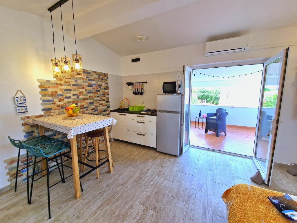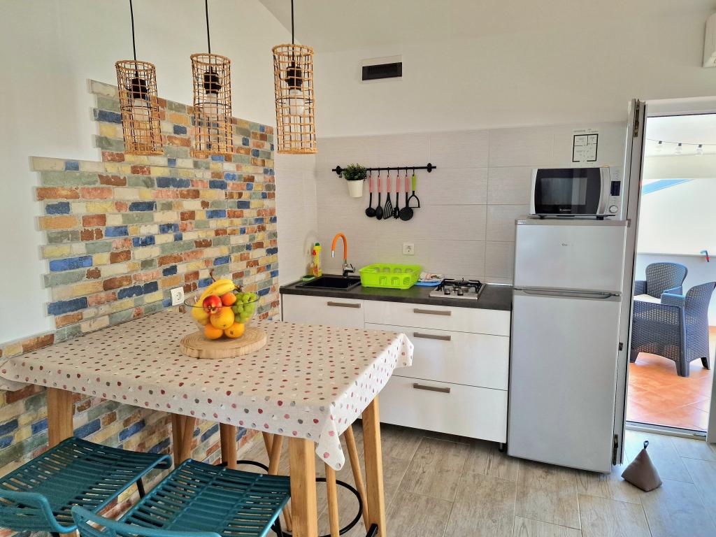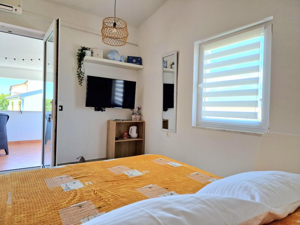 L'appartement est situé à Bilotinjaka II, maison numéro 18, à Privlaka (Škrapavac). Il est situé près de la ville de Zadar, à 15 km, et de la station touristique de Zaton, à 1 km. La distance à la plage est d'environ 200 mètres, et la plage est adaptée aux petits enfants et aux non-nageurs car la mer est peu profonde et sablonneuse. La capacité d'hébergement est prévue pour 4 personnes, idéale pour les parents et deux enfants. L'appartement est dans une maison familiale au premier étage. La superficie de l'appartement est de 36 m2 + 15 m2 de terrasse couverte et se compose de : - chambre - salon - avec lit double - cuisine - salle de bain - climatisation - barbecue (dans la cour) - douche solaire (dans la cour) - place de parking