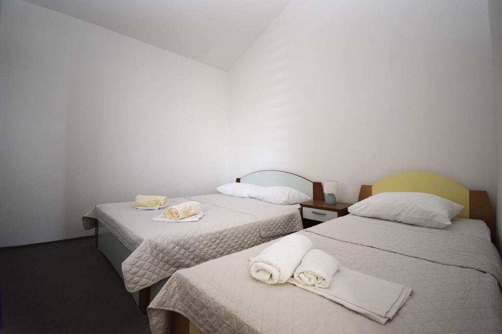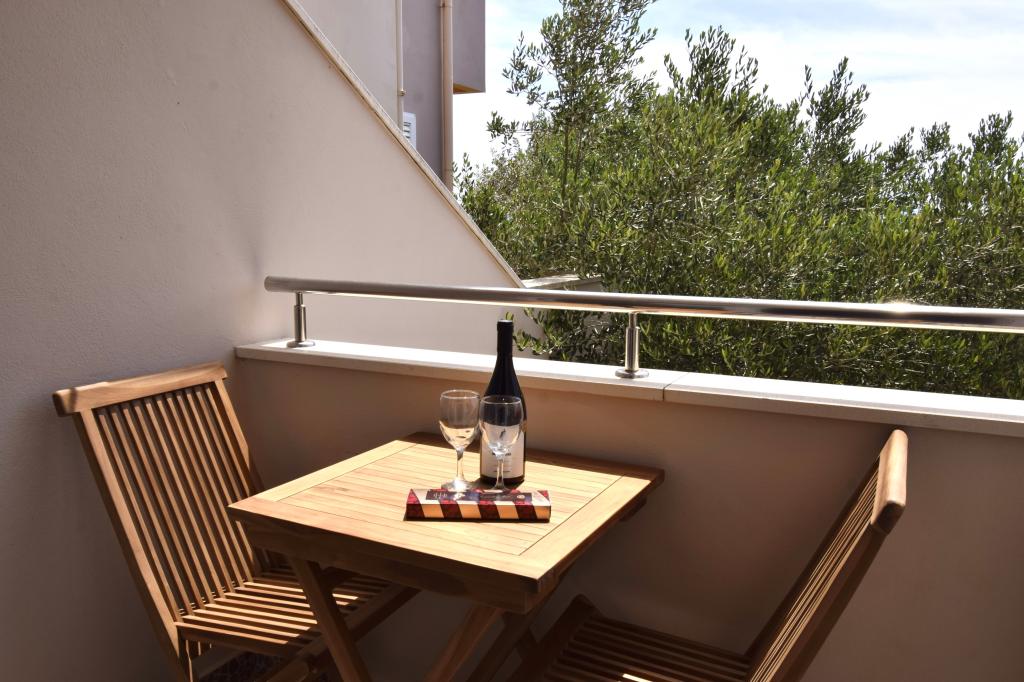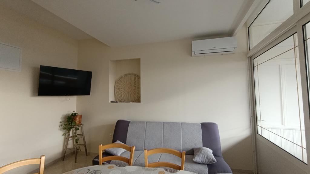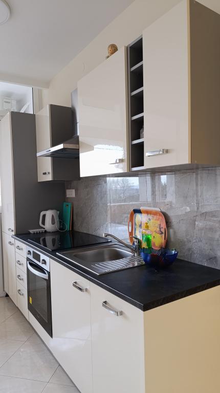 La maison est située au deuxième rang de la mer, dans un quartier résidentiel calme. Tous les appartements disposent de balcons avec vue directe sur la mer. Il y a aussi un terrain de sport et un parc pour enfants à proximité immédiate.