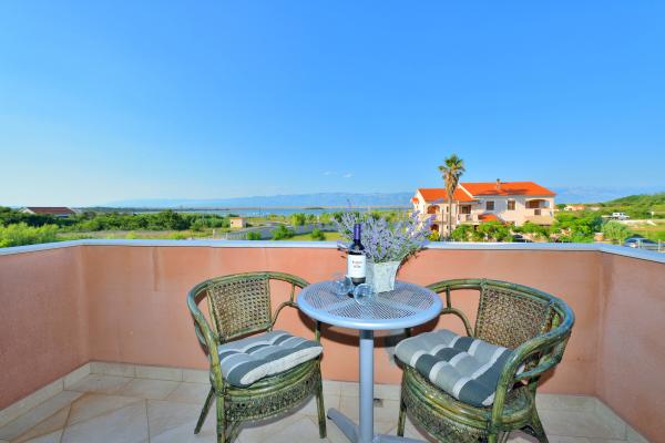 Propriétaire très sympathique, vue sur la mer depuis la terrasse, supermarché accessible à pied, belles villes comme Nin, Vir et Zadar à proximité.