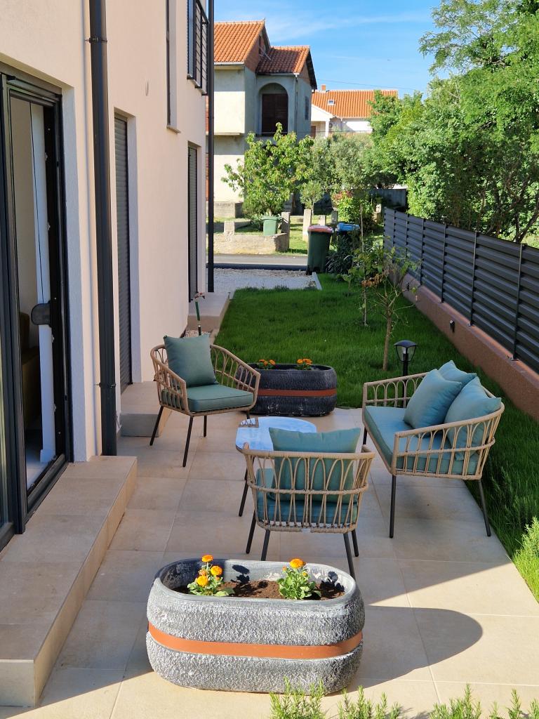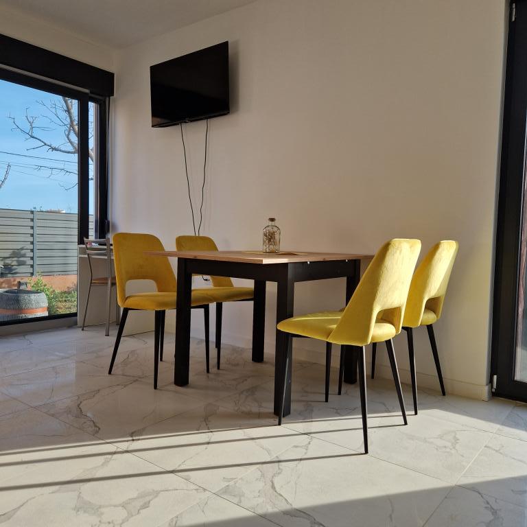 Relaxsea est une maison familiale moderne composée de 3 appartements au rez-de-chaussée, chacun disposant d'une place de parking privée séparée. Les appartements disposent d'un séjour spacieux avec cuisine ouverte, d'une chambre séparée, d'une salle de bain avec douche "à l'italienne" et d'une terrasse, qui garantit l'intimité. La maison se distingue par une piscine commune, une douche extérieure et un barbecue, une plage à 100 mètres du logement et la proximité de toutes les installations nécessaires telles qu'un magasin, un restaurant, une pharmacie et un bureau de poste. Chaque appartement dispose d'une cuisine entièrement équipée avec plaques à induction, lave-vaisselle, grill, four micro-ondes et réfrigérateur avec congélateur. De plus, un accès Internet gratuit et une télévision avec accès aux services de « streaming » sont offerts, et les serviettes et le linge de lit sont disponibles dans l'établissement. Un choix idéal pour les familles avec enfants, les personnes âgées et les amateurs de vélo, étant donné qu'un sentier pédestre et cyclable d'un kilomètre de long s'étend sur toute la péninsule de Privlaka.