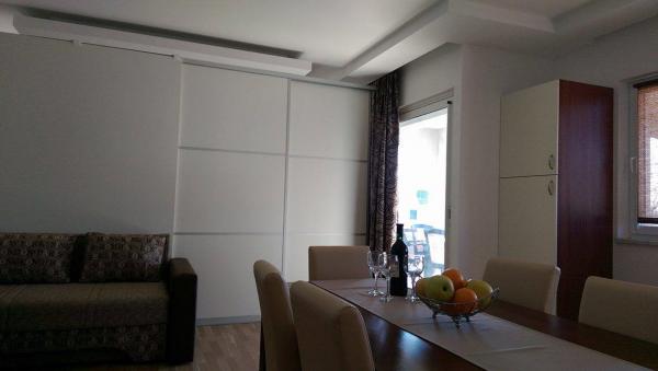 J'ai séjourné dans ce fantastique appartement du 16 au 23 juillet et j'en suis ravi. Nous y étions avec deux familles avec deux enfants ... L'appartement est magnifique, frais et spacieux ... Le seul inconvénient est le manque de garde-robe dans la petite chambre, mais cet inconvénient peut être surmonté ... La piscine est sensationnelle et l'hôte, M. Ante, s'occupe de lui tous les jours. Il est nettoyé de la saleté de surface et avec un aspirateur sous-marin! A côté se trouve un magnifique jardin dans lequel vous pouvez cueillir des tomates ou des poivrons ... La distance du centre est de 1 km, mais cela donne à cet appartement des avantages encore plus grands ... Et la proximité de Nin, de l'île de Vir ou de Pag est un autre des nombreux avantages! Je recommande cet endroit avec un cœur pur et j'y retournerai certainement. Merci M. Ante Saric pour ce super séjour!