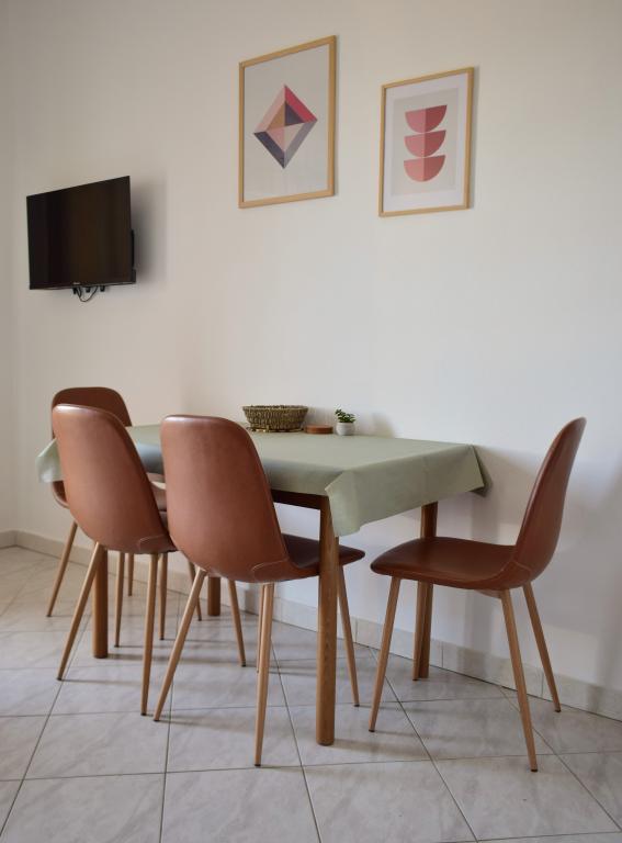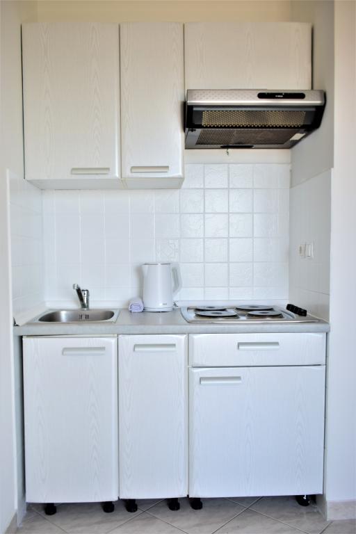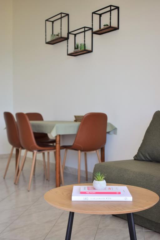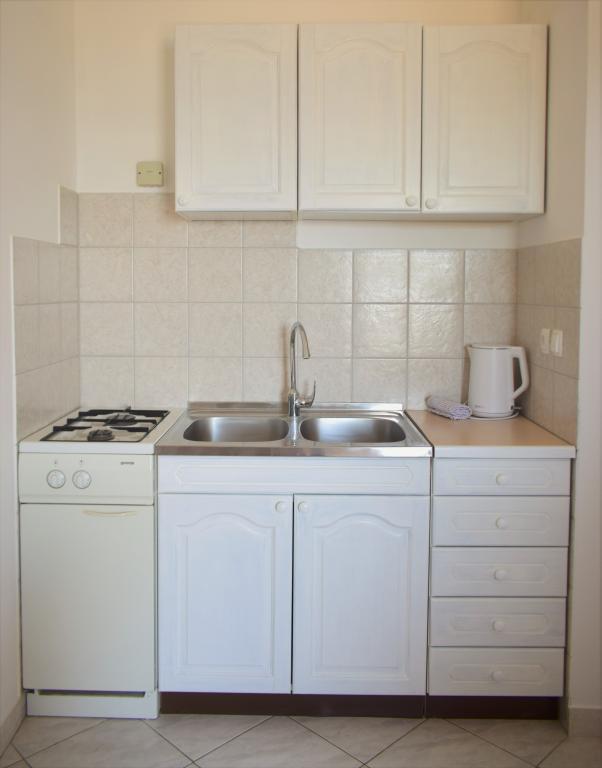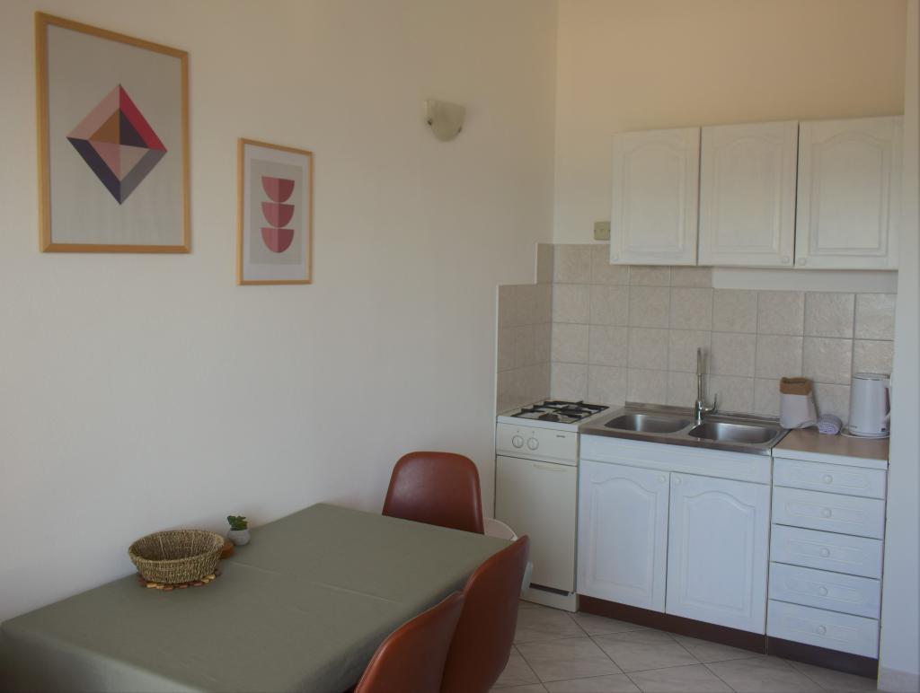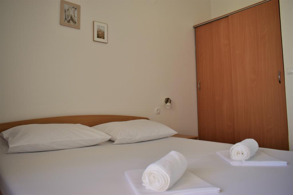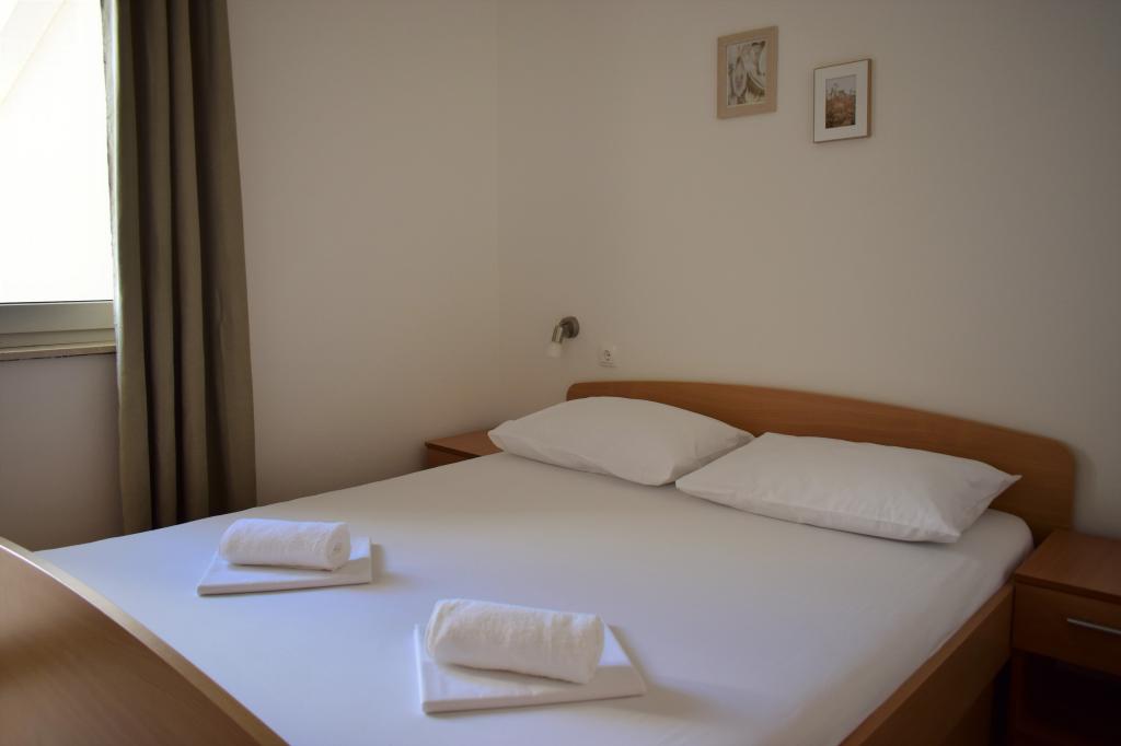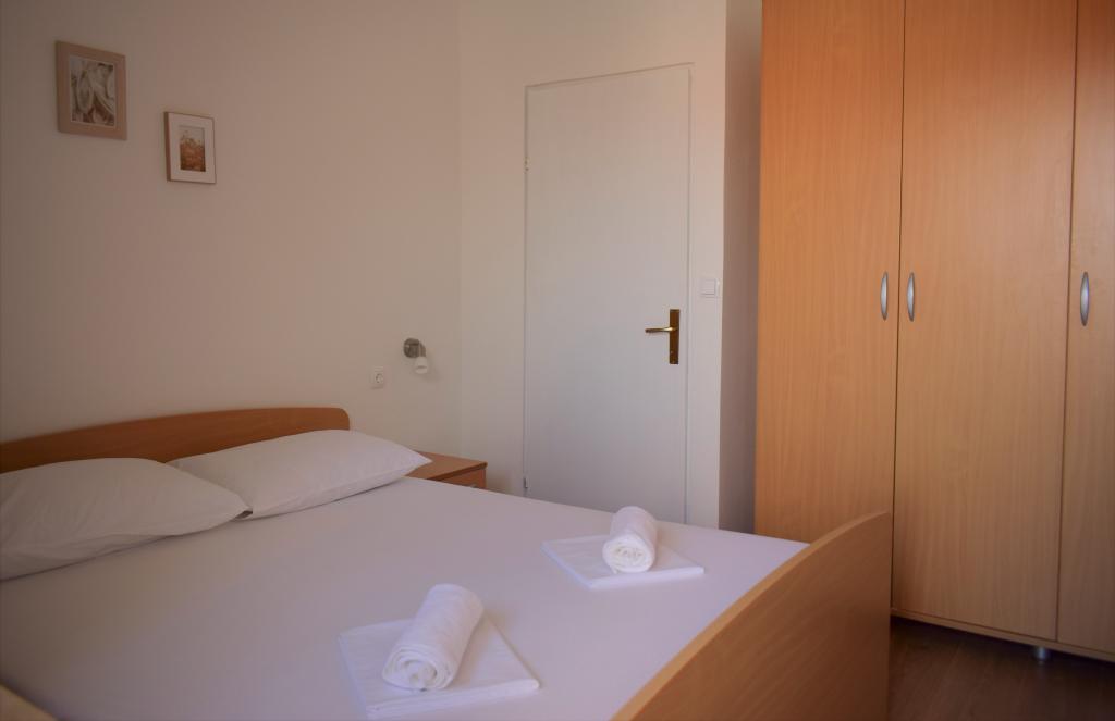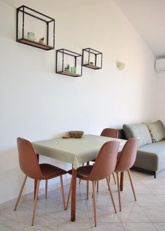 Appartements agréables dans un quartier calme, situés au premier rang de la mer. L'établissement est situé à 10 minutes à pied de toutes les installations nécessaires pour passer d'agréables vacances, telles qu'un magasin, une pharmacie, une clinique, un bureau de poste, etc. La plage est située à proximité immédiate de l'établissement, à seulement 50 mètres. L'établissement propose également un parking et les appartements eux-mêmes sont situés au deuxième étage de l'établissement, d'où vous pourrez profiter d'une belle vue sur la mer et les îles.