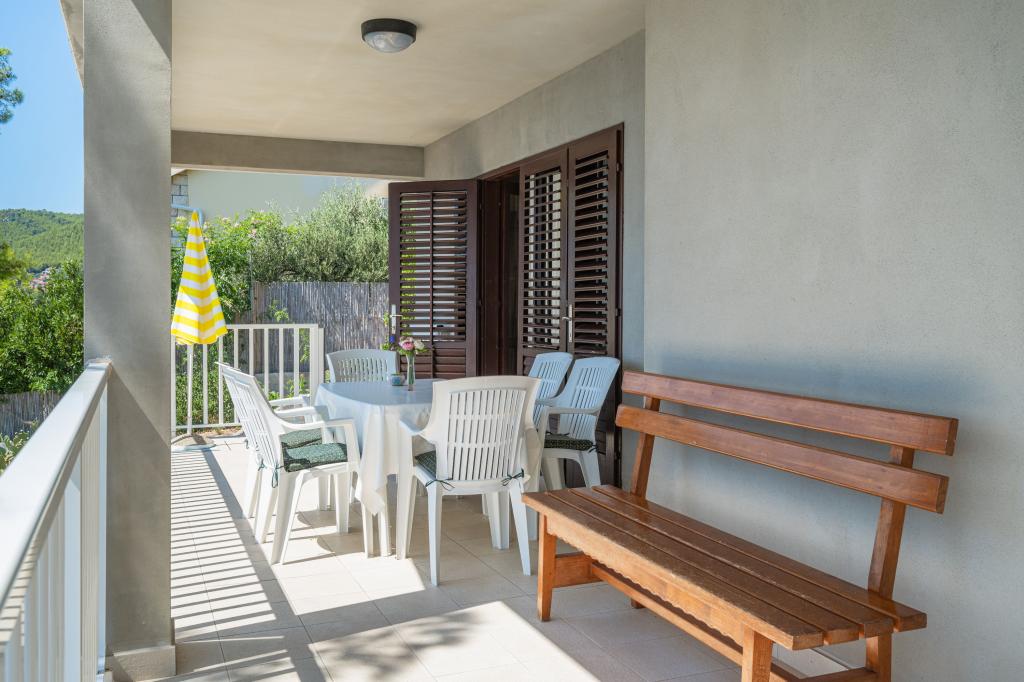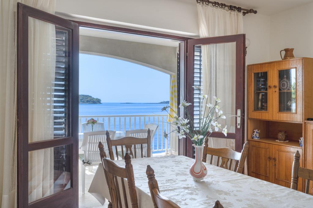 L'appartement Branka est situé au sud-ouest de l'île de Korčula, dans la magnifique baie de Prižba, avec vue sur la mer et les petites îles environnantes. Il dispose d'un accès à la plage, d'un parking et d'une grande terrasse. Conçu pour 6 personnes, il comprend trois chambres, une cuisine, un salon et des toilettes. À environ 500 mètres à l'ouest se trouve une plage de galets avec divers services, tels qu'un bar de plage, une école de voile, des locations de jet-ski et de petits bateaux. Prižba compte également des restaurants et un centre de plongée.