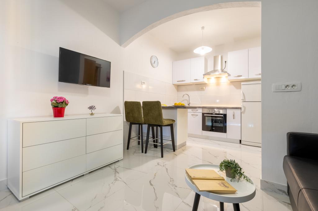 Seul le village est dans la position idéale, l'hébergement est excellent, donc des hôtes sympathiques sont rarement trouvés, bel environnement, parking, calme garanti, mer et plage propre comme un coup de sifflet. Nous recommandons vivement !!!