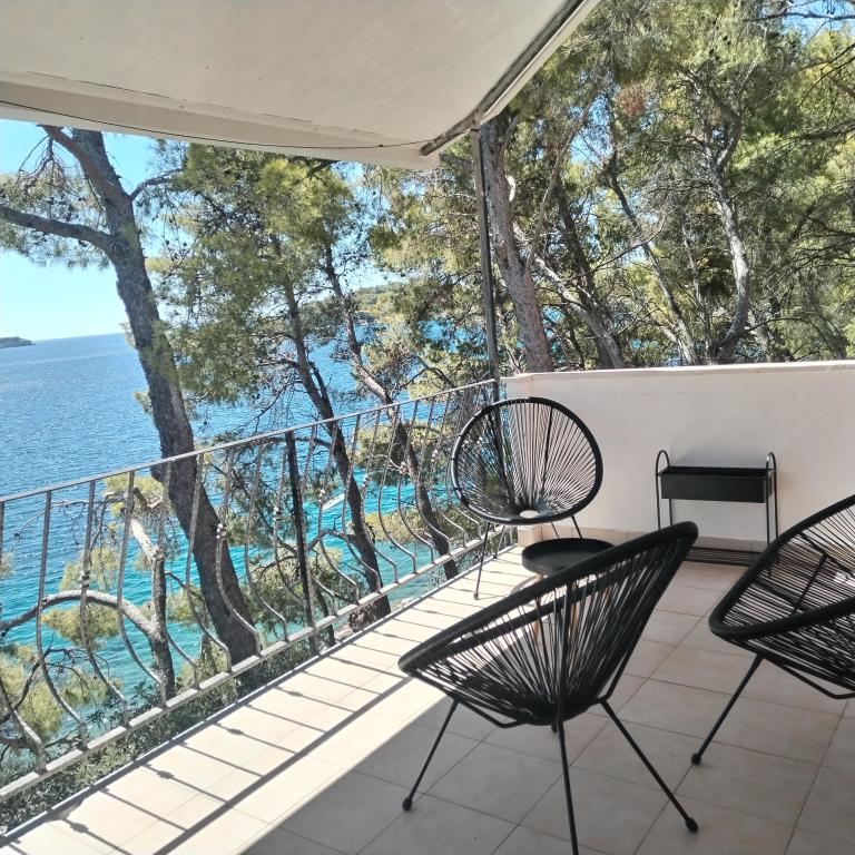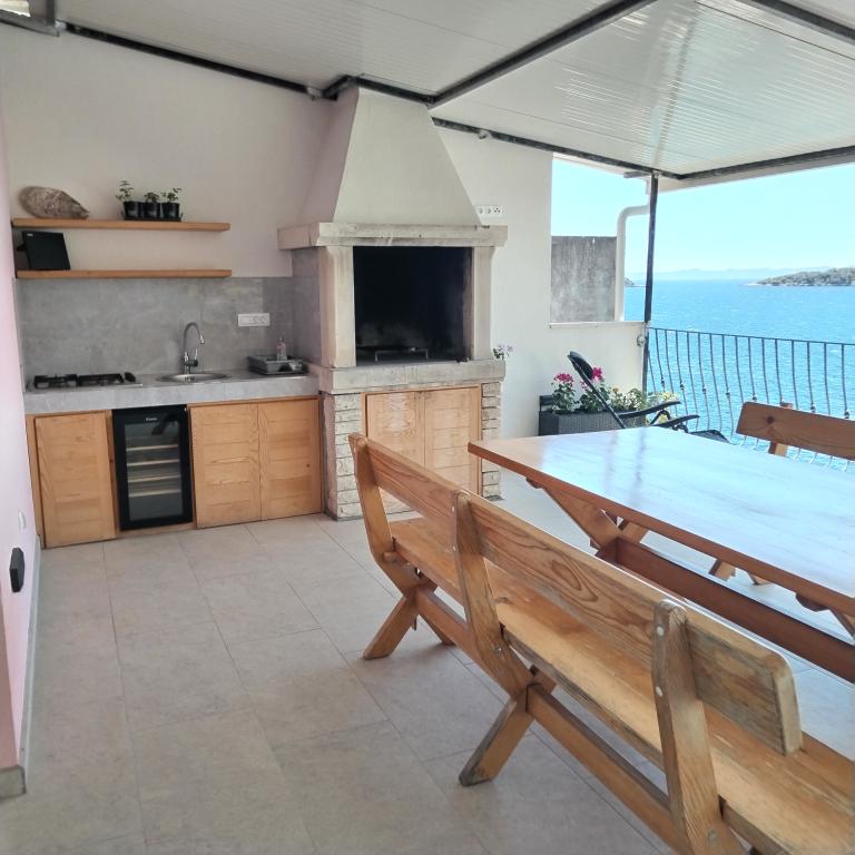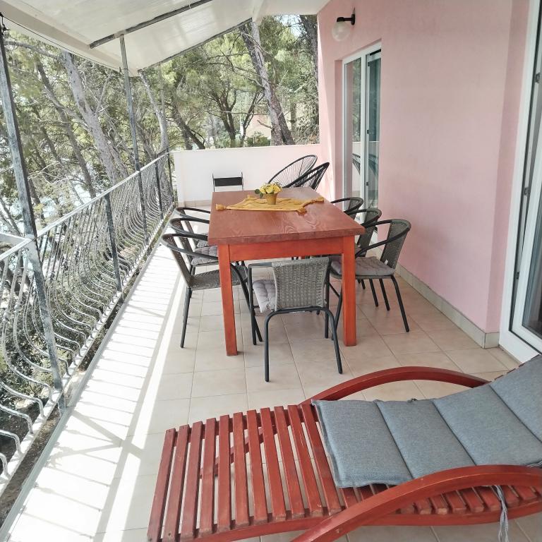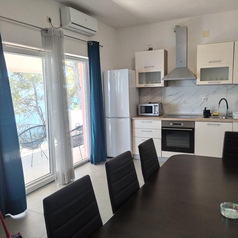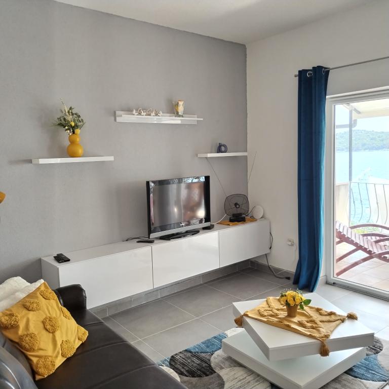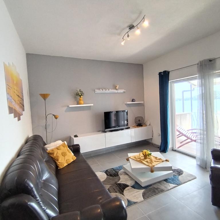 Appartements entièrement expédiés dans la ville tranquille de Prizba. Ils sont situés au 1er rang de la mer. Possibilité de visites organisées à notre taverne, et achat d'huile d'olive et de vin locaux. Chers invités, bienvenue dans notre hébergement!