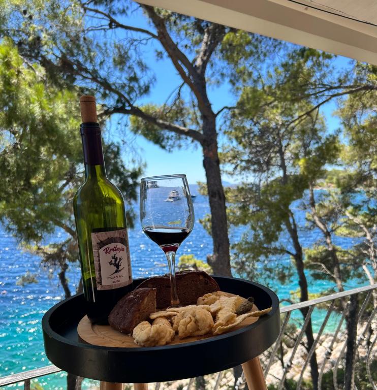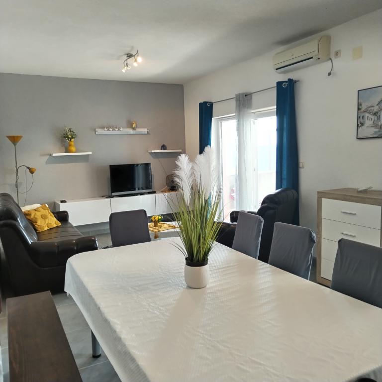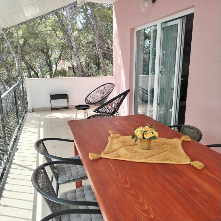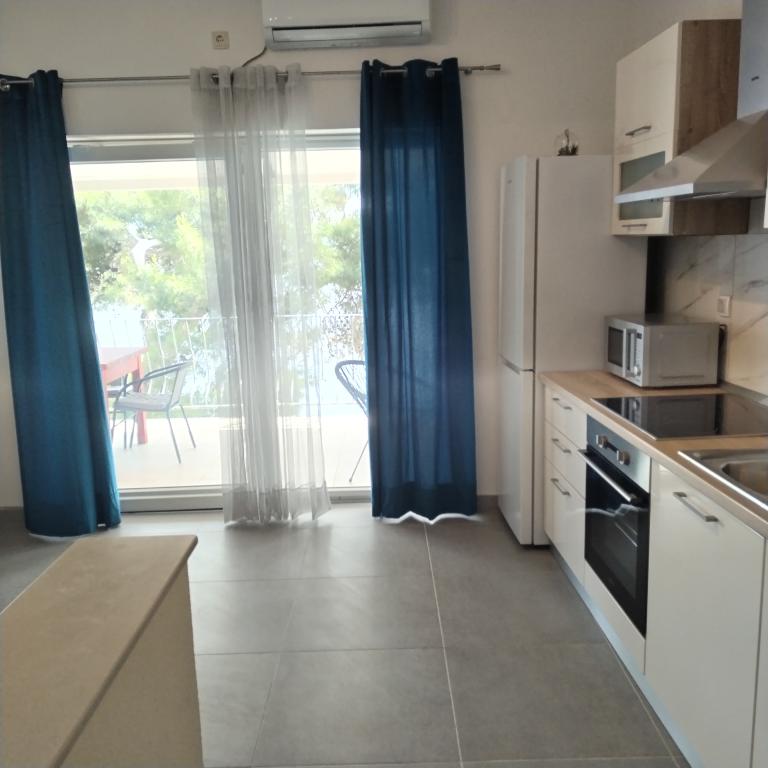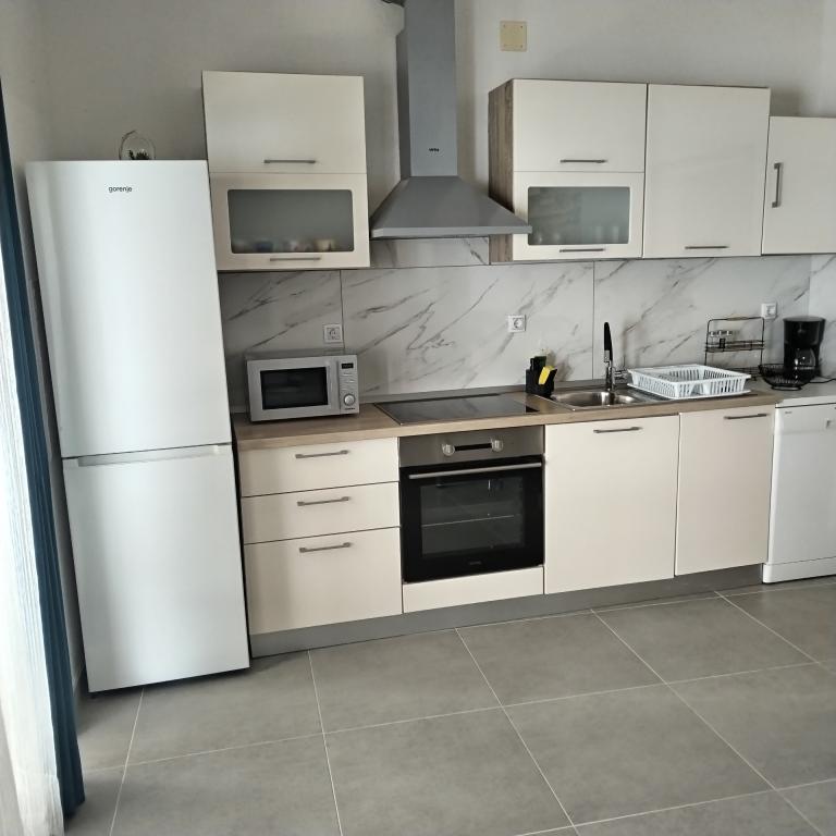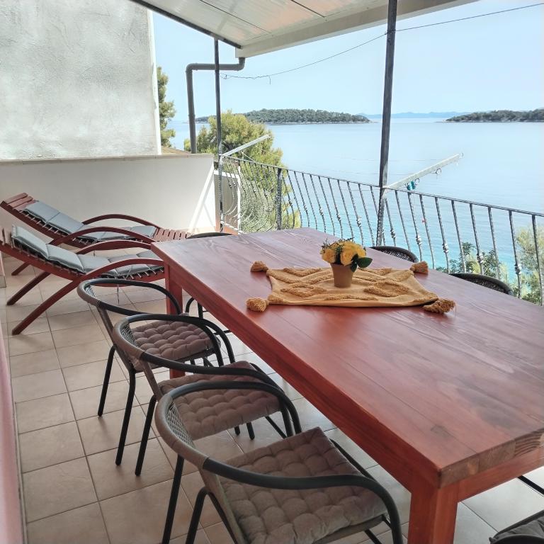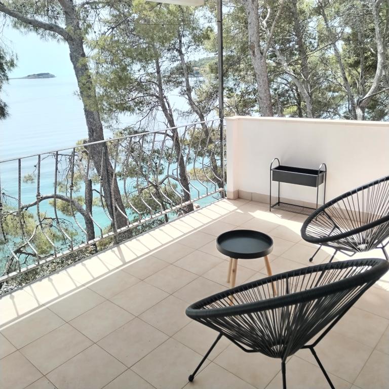 Appartements entièrement expédiés dans la ville tranquille de Prizba. Ils sont situés au 1er rang de la mer. Possibilité de visites organisées à notre taverne, et achat d'huile d'olive et de vin locaux. Chers invités, bienvenue dans notre hébergement!
