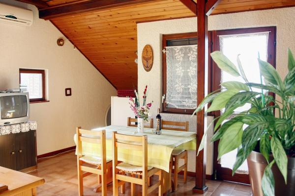 Appartement de deux chambres pour quatre ou cinq personnes, entièrement meublé et équipé. Deux chambres ont chacune 2 lits et il est possible d'utiliser un lit d'appoint. Cuisine, salle à manger, salon, salle de bain, terrasse avec belle vue sur la mer et la montagne Biokovo. L'appartement est situé au troisième étage. Devant la maison il y a un jardin et un barbecue à la disposition de tous les clients. L'installation est à quelques pas de la plage et du centre de Promajna. Toutes les autres installations nécessaires sont à proximité immédiate.