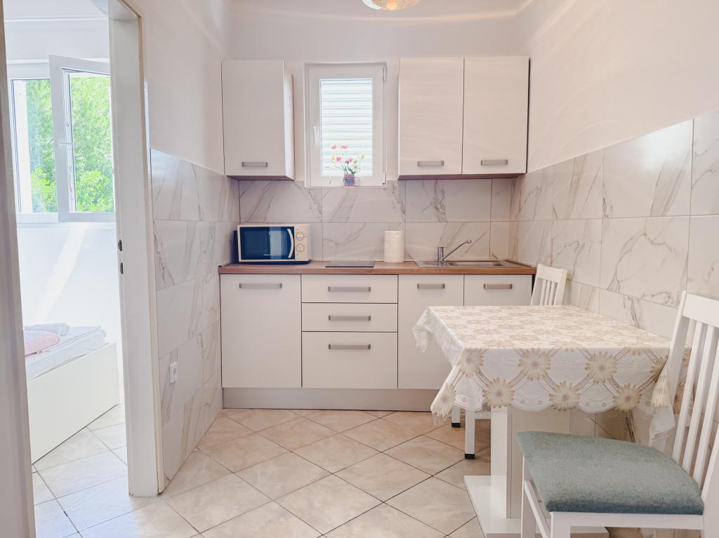 Les appartements Rosemary sont situés dans un quartier calme de Promajna, loin du bruit des touristes et des voitures. Le chemin vers la plage fait 300 mètres. Nos appartements disposent de balcons privés avec vue sur la mer, d'un parking privé, de la climatisation, de 2 chambres et d'une cuisine privée. Derrière la maison il y a une terrasse commune à l'ombre.
