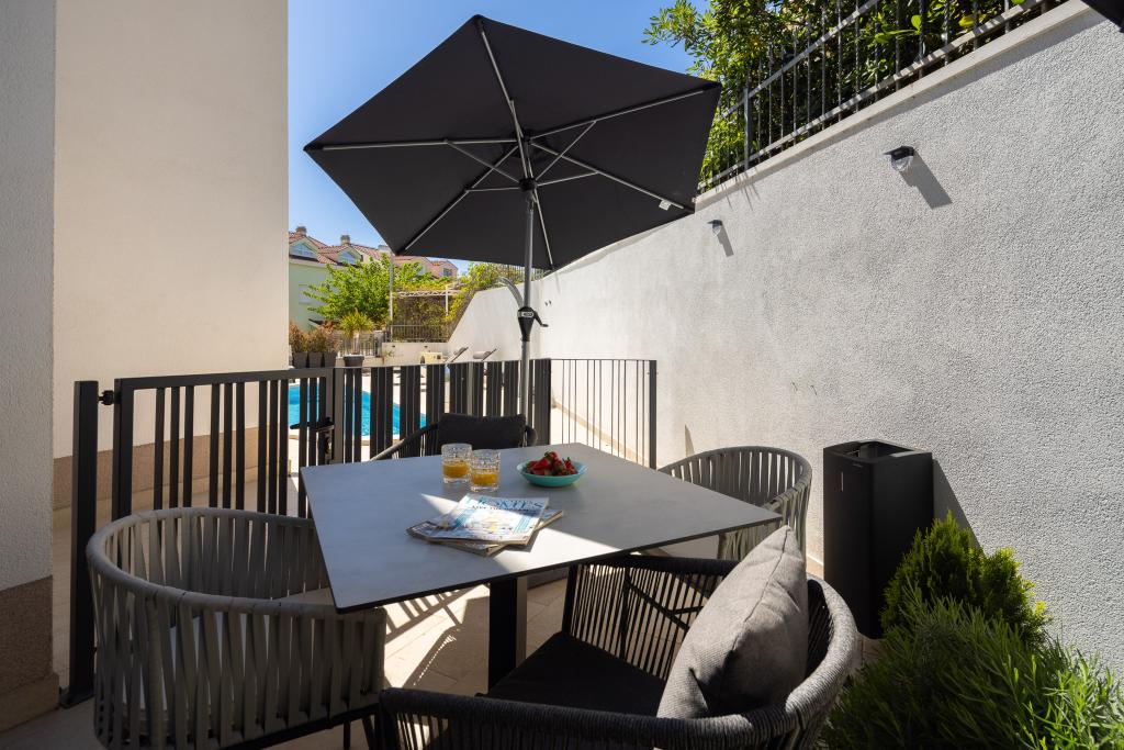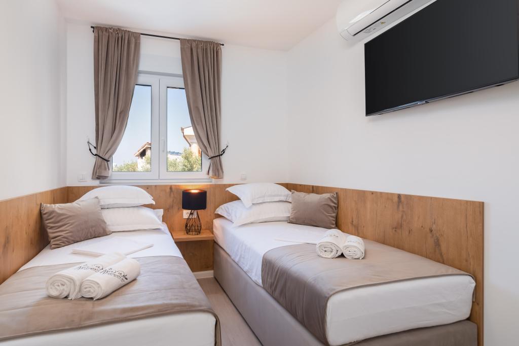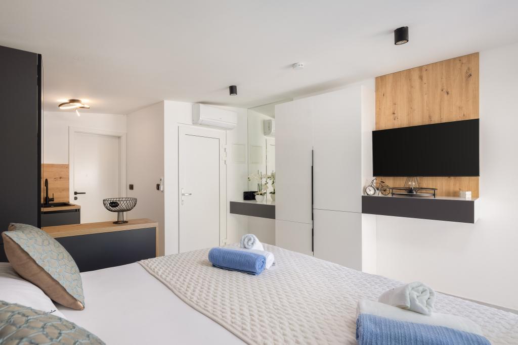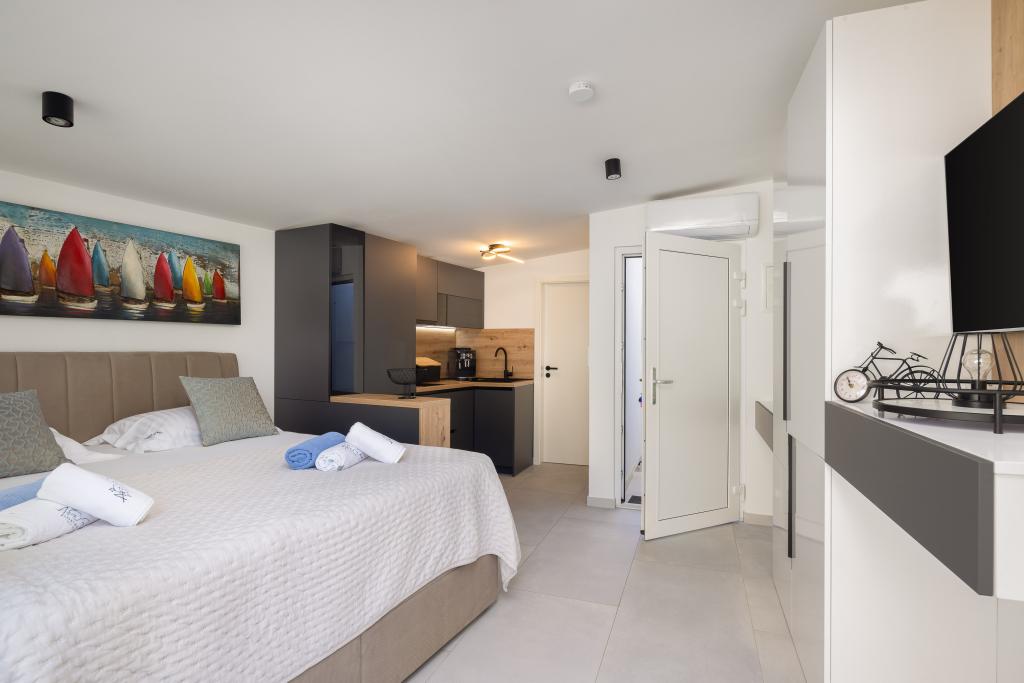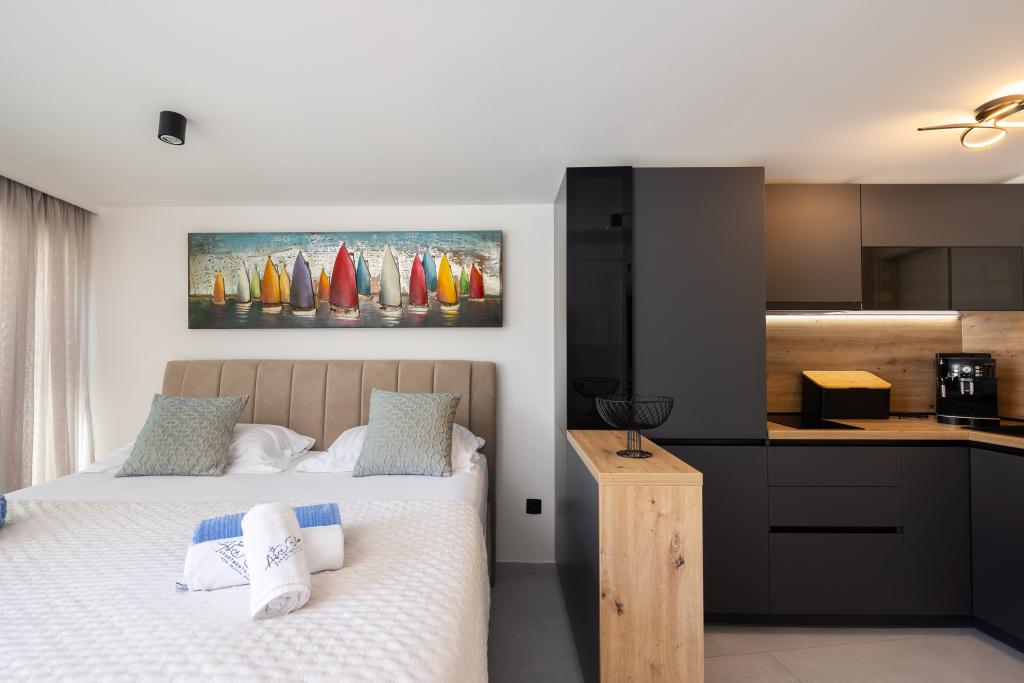 Nous vous présentons les appartements A&D Deluxe avec piscine, des unités d'hébergement confortables situées à quelques pas de la mer, à seulement 300 mètres. Chaque appartement offre une combinaison parfaite de confort et de luxe. L'appartement A1, avec 2 chambres, 2 salles de bains et une terrasse spacieuse, offre une vue partielle sur la mer et constitue un lieu idéal pour se détendre en famille ou en petits groupes. De plus, les clients ont un accès direct à la piscine, leur permettant de profiter de rafraîchissements et de divertissements supplémentaires. La suite A2, également dotée de 2 chambres et 2 salles de bains, a également accès à la piscine, permettant aux clients de s'amuser et de se détendre davantage. L'appartement A3, avec une chambre et une salle de bains, a également accès à la piscine et est idéal pour les couples ou les petites familles à la recherche de vacances reposantes près de la mer. Tous les appartements sont entièrement équipés, comprenant une cuisine, un parking privé, des climatiseurs et des télévisions intelligentes, garantissant confort et commodité pendant votre séjour. Profitez du luxe d'une piscine privée et de la proximité de belles plages dans ces appartements.