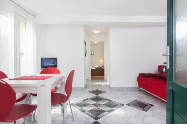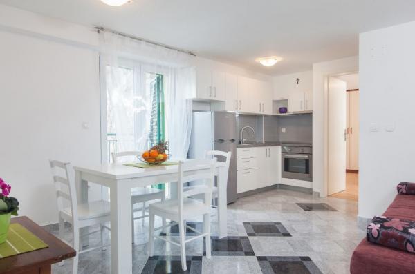 Nous étions dans Ap. 2 + 2 au troisième étage. Hauteur n'était pas un problème, car après avoir descendu les escaliers presque sous sa plage de souffle. Magnifique plage de pins et de palmiers pour ceux qui cherchent l'ombre. Appartement très agréable, pas trop grandes chambres, mais suffisant, d'ailleurs, personne ne se trouvait dans les, parce que nous avions une immense terrasse. Une terrasse avec une vue magnifique. C'est notre 7ème séjour en Croatie, mais panoramas si merveilleux a jamais eu. J'ai ri que le petit déjeuner œil gauche regarde les montagnes et à droite sur la mer:-). J'étais un peu inquiet cuisine séparée (sur la terrasse) et il s'est avéré être un avantage. Vous pourriez obtenir jusqu'à quand vous voulez et obtenir de la nourriture prête sans déranger les autres dorment encore membres de la famille. Internet a parfaitement fonctionné. Dans la cuisine, tout l'équipement nécessaire avec un grand réfrigérateur. Très propre, serviettes changées, pour les petits savons faits maison, certainement sur le oliwce. Une équipe - aimé de tous jusqu'à présent rencontré. Gratuit a 6 (pour 3 personnes) et des pommes de poissons fraîchement pêchés sur le gril. Et encore, les figues ensemble plat cueillies dans le jardin. Mer très profonde mais limpide. Dans l'ensemble un séjour très agréable. Merci Babic !!