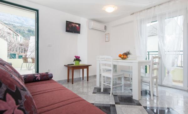 Bel emplacement, hôte sont une grande famille qui fera tout pour leurs clients un agréable séjour dans leur maison. La maison est presque sur la plage qui est aussi belle avec palmiers et de pins. La vue est à couper le souffle autour, la montagne d'un côté et les îles (Hvar, Brač) sur l'autre. Higly recommandé!