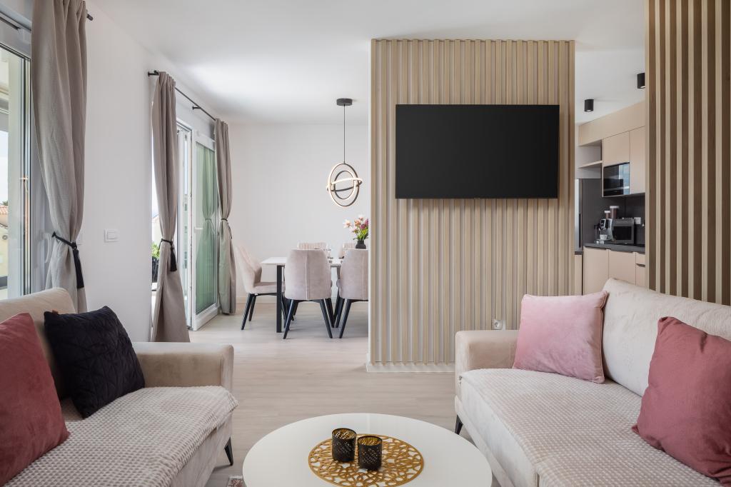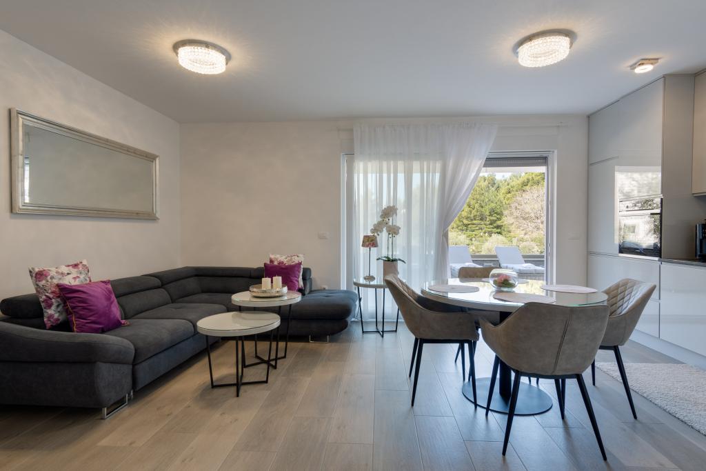 **** OFFRE SAISONNIÈRE FINALE - 10 % sur tous les prix affichés pour les réservations non effectuées. **** Nous proposons des appartements de luxe à Promajna. Tous les appartements disposent de chambres confortables avec télévision connectée. Tous les appartements disposent d'un parking privé (l'appartement du rez-de-chaussée dispose de 2 places de parking). L'appartement est équipé de meubles et d'appareils électroménagers haut de gamme. L'appartement du rez-de-chaussée dispose d'un store électrique et d'une douche extérieure supplémentaire.