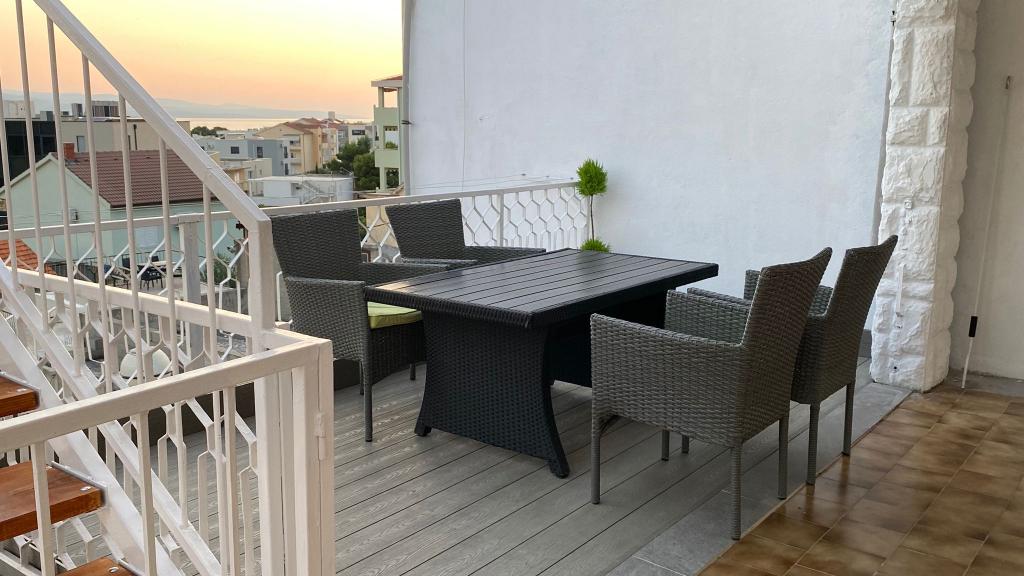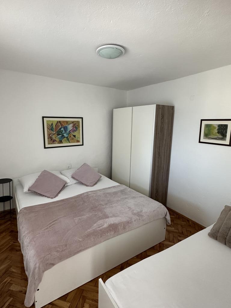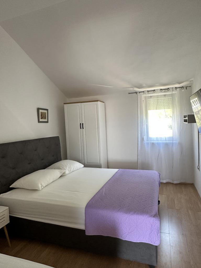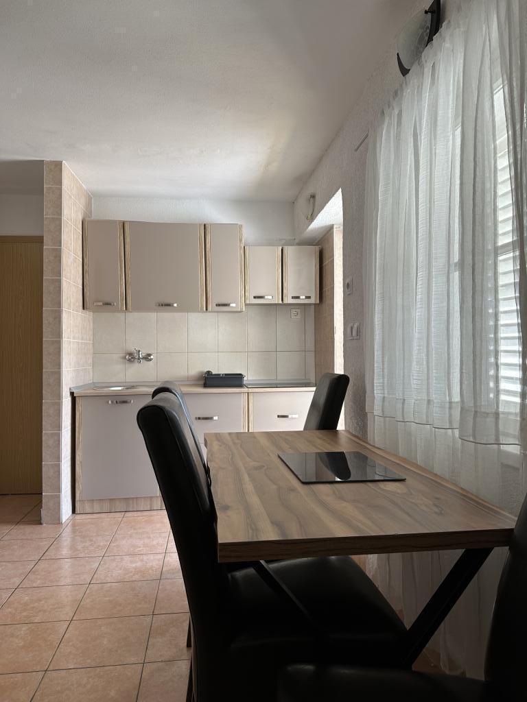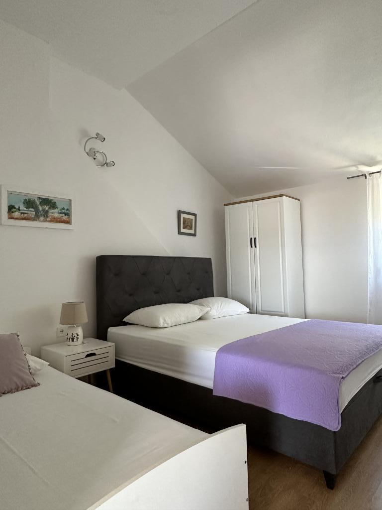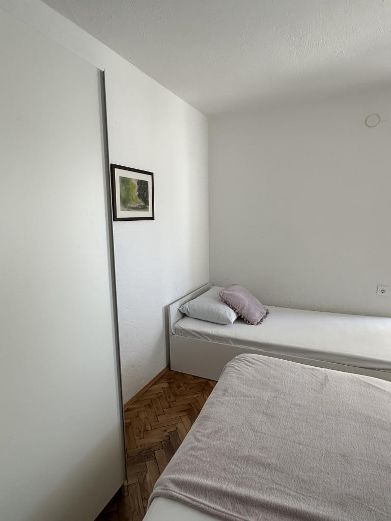 Appartement Promajna à 200 m de la mer. 3 appartements séparés par étage avec vue mer. Parking, TV, climatisation, internet. La plage est située dans une pinède. Une petite station balnéaire idéale pour les vacances, à côté de laquelle se trouve un village d'enfants connu pour traiter la bronchite. Chaque appartement dispose de deux chambres avec lits doubles et lit supplémentaire, salle de bains, cuisine, terrasse avec vue mer. Makarska à 5 km. Baska Voda à 3 km. Promajna est reliée à la promenade Baška Voda à travers la pinède au bord de la mer. Le prix est de 80 euros plus 1 € de taxe de séjour par adulte.