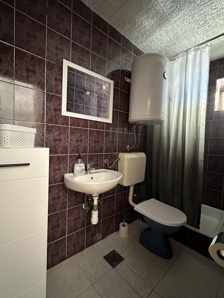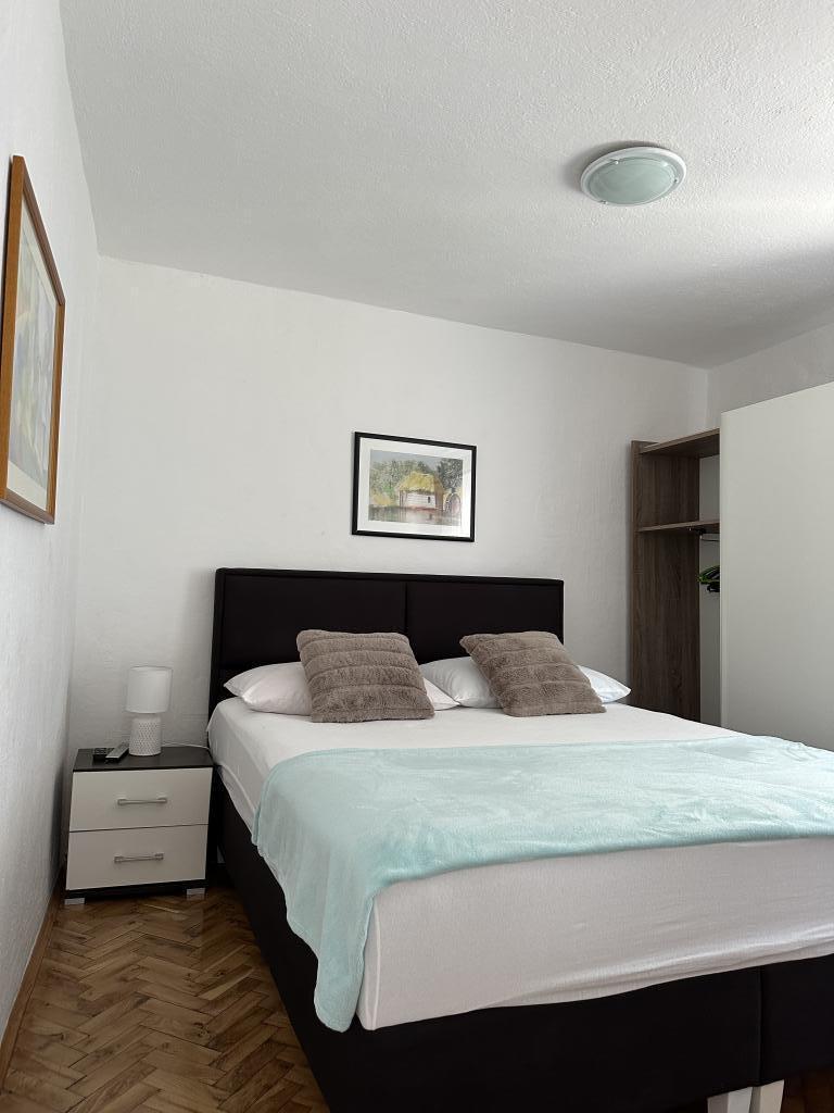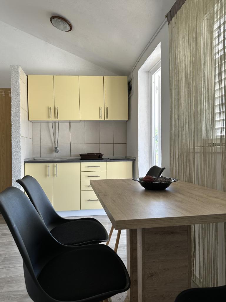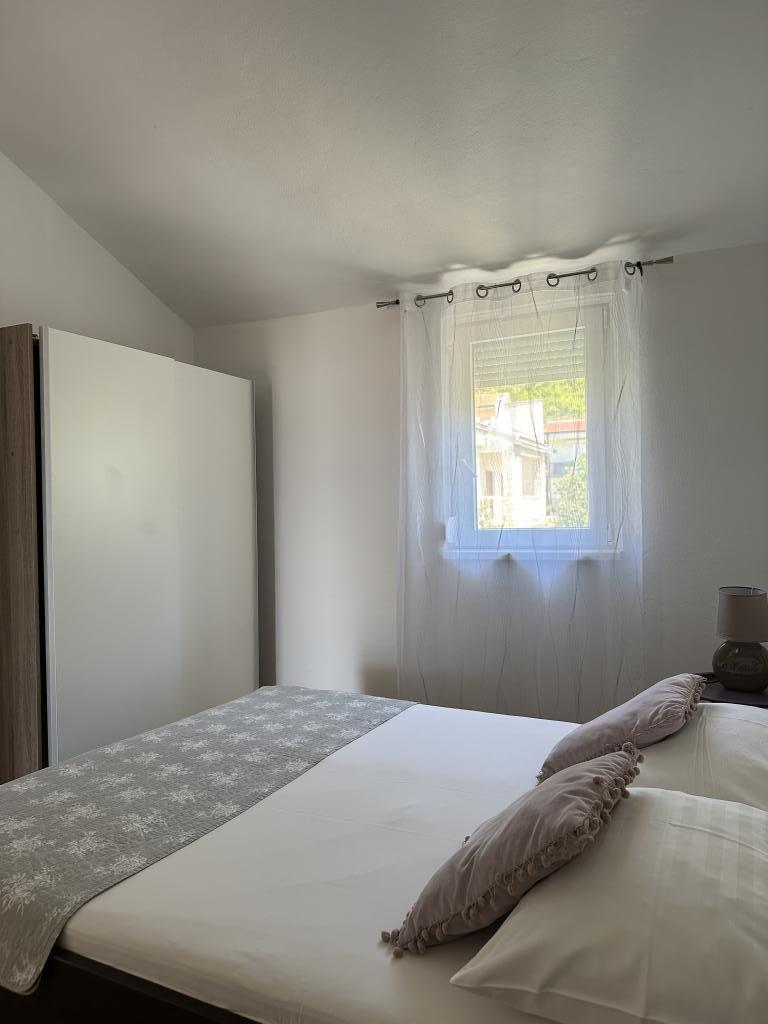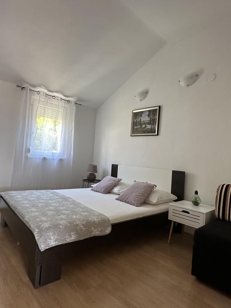Appartement Promajna à 200 m de la mer. 3 appartements séparés par étage avec vue mer. Parking, TV, climatisation, internet. La plage est située dans une pinède. Une petite station balnéaire idéale pour les vacances, à côté de laquelle se trouve un village d'enfants connu pour traiter la bronchite. Chaque appartement dispose de deux chambres avec lits doubles et lit supplémentaire, salle de bains, cuisine, terrasse avec vue mer. Makarska à 5 km. Baska Voda à 3 km. Promajna est reliée à la promenade Baška Voda à travers la pinède au bord de la mer. Le prix est de 80 euros plus 1 € de taxe de séjour par adulte.