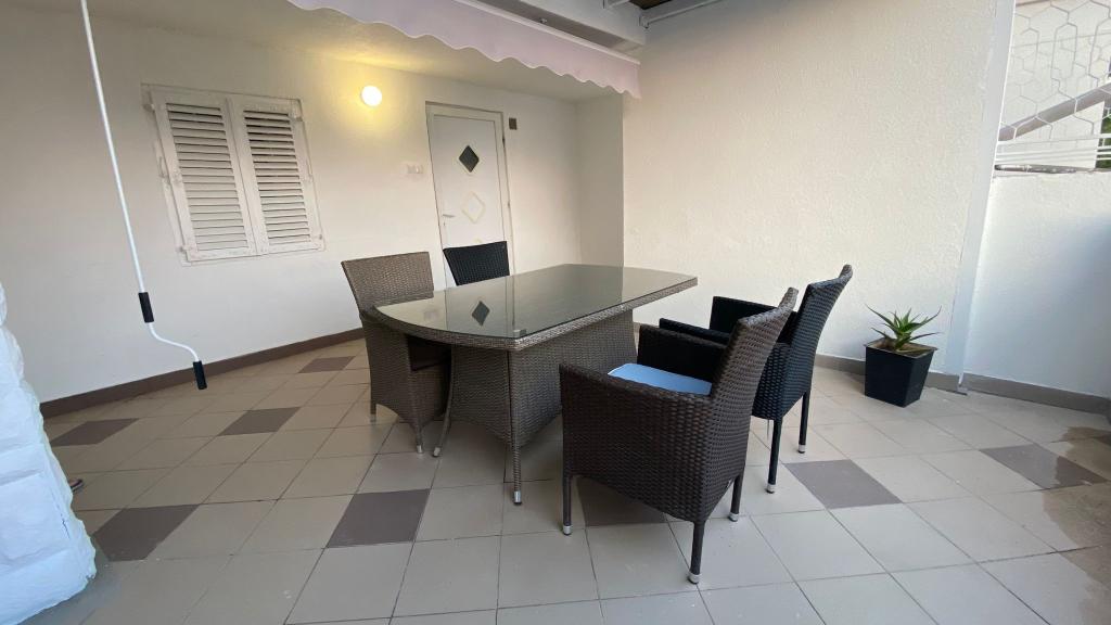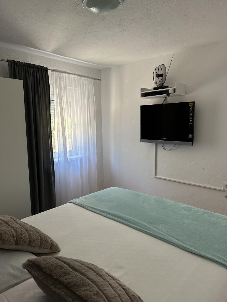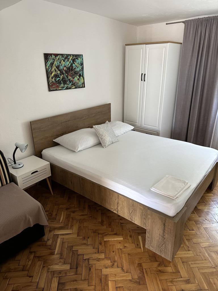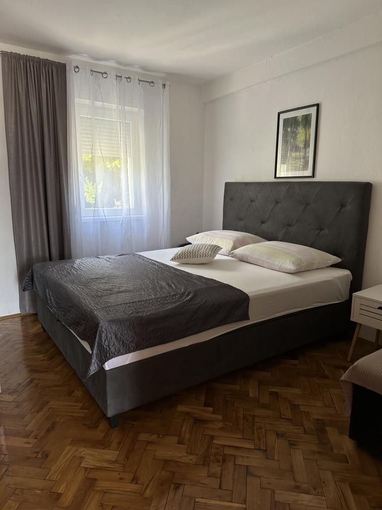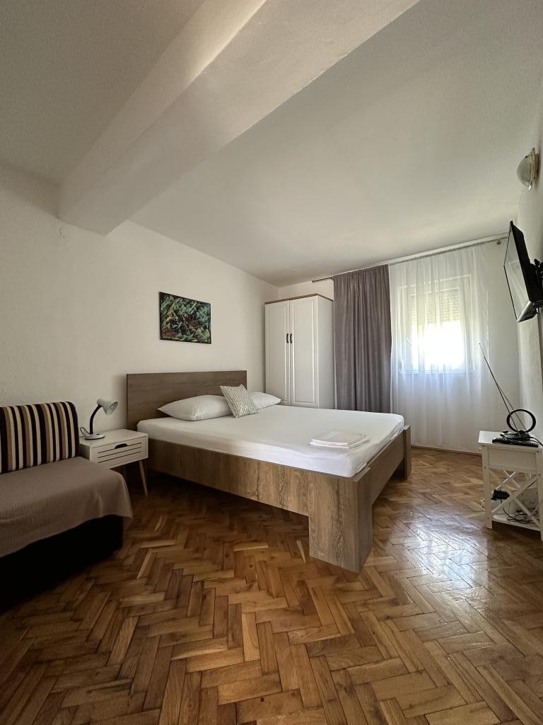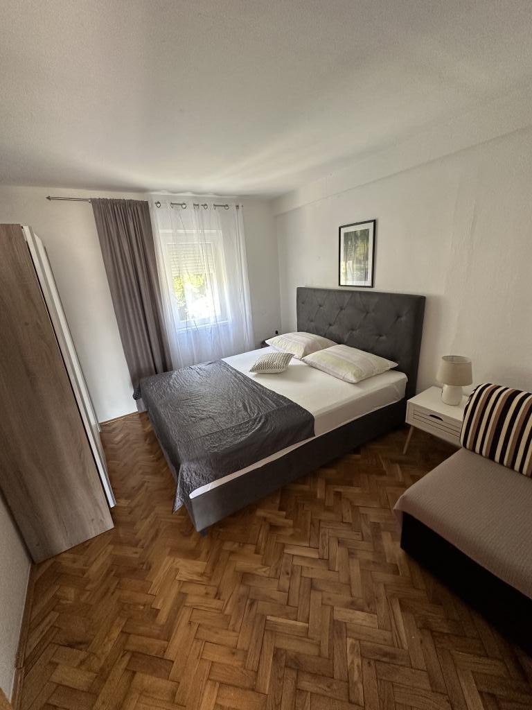 Appartement Promajna à 200 m de la mer. 3 appartements séparés par étage avec vue mer. Parking, TV, climatisation, internet. La plage est située dans une pinède. Une petite station balnéaire idéale pour les vacances, à côté de laquelle se trouve un village d'enfants connu pour traiter la bronchite. Chaque appartement dispose de deux chambres avec lits doubles et lit supplémentaire, salle de bains, cuisine, terrasse avec vue mer. Makarska à 5 km. Baska Voda à 3 km. Promajna est reliée à la promenade Baška Voda à travers la pinède au bord de la mer. Le prix est de 80 euros plus 1 € de taxe de séjour par adulte.