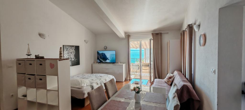 Je recommande en toute bonne conscience, nous avons séjourné dans l'appartement 2 + 2 10 jours. L'appartement est très grand, spacieux et très propre, une belle grande terrasse avec vue sur la mer, rien de plus pour être heureux, vous n'avez besoin de nulle part près de la plage, du magasin, du restaurant, super endroit, très bel endroit près de Promajna. La propriétaire était très gentille et serviable, elle était toujours là pour aider. Nous ne retournons jamais aux mêmes endroits mais ici nous reviendrons certainement