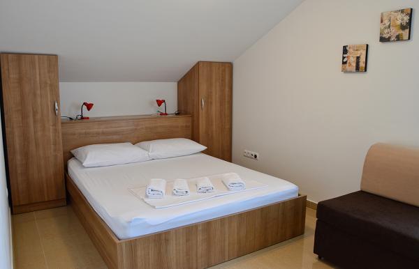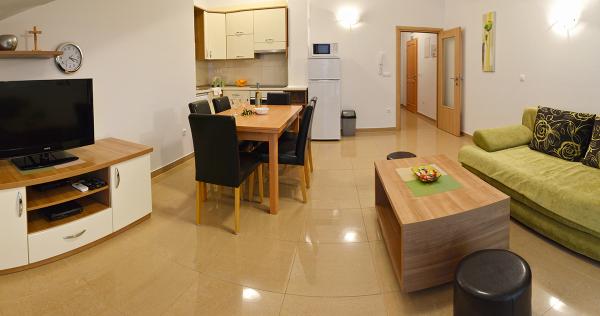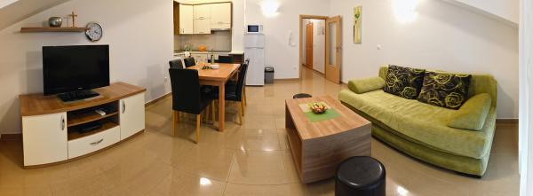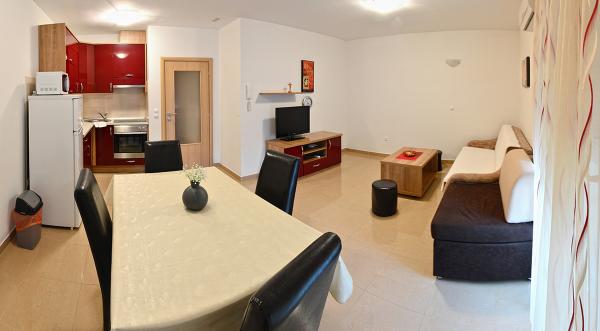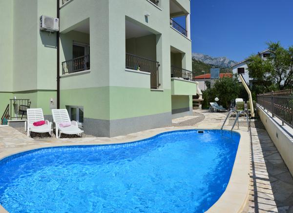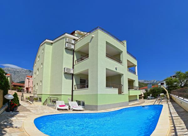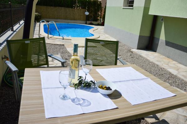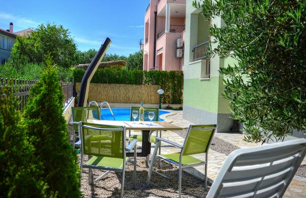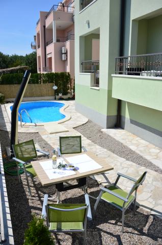 Nous avons séjourné dans un appartement 2+2 au sous-sol. Tout était magnifiquement propre, neuf, entièrement équipé. Nous avons monté les escaliers et avons pu sauter directement dans la piscine. La piscine était belle, propre. L'hôtesse est très gentille. La mer est proche, à 3 minutes à pied de la maison. Tout en 1*. Nous serions ravis de revenir ici!