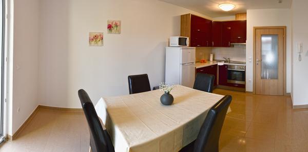 Tous les appartements sont neufs et luxueusement équipés. A côté de la maison se trouve une piscine. Les appartements sont à 60 mètres de la plage.