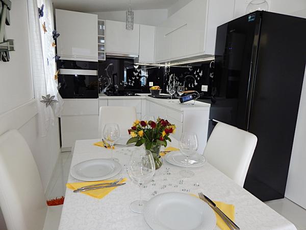 Nous recommandons cet endroit. Proche de la mer et de la plage, beau jardin. Immense terrasse et balcons donnant sur la mer. Les propriétaires sont serviables et très sympathiques. Parfait pour les familles avec enfants. L'appartement est très spacieux.