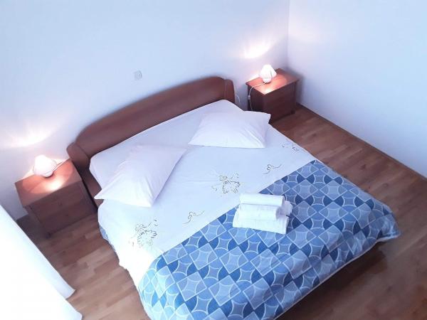 Cette année, nous étions avec des amis, c'est-à-dire deux familles avec quatre enfants âgés de 6 à 10 ans avec Barba Roka et tante Nada, le patron Kety et le bon Mladen. Les gens, nous vous mentionnons encore aujourd'hui et nous ne pouvons pas vous féliciter. Cette fête restera dans nos merveilleux souvenirs. Bratus est un endroit idéal pour tous ceux qui ont de jeunes enfants, pour les célibataires et pour ceux qui n'aiment pas les foules et les plages bondées. Si vous aimez tout cela, vous pouvez marcher jusqu'à Promajna en 10 minutes et à Baska Voda en 20 minutes. Bratus est un merveilleux petit village de pêcheurs de conte de fées, idéal pour les romantiques. Les appartements sont propres, bien rangés, équipés de lave-linge, lave-vaisselle, cuisine avec vaisselle complète. Les appartements sont sur la côte. Nous avons hâte de vous rendre visite l'année prochaine également. PS Merci à tous pour la merveilleuse fête d'anniversaire que vous avez préparée pour notre Dunja.