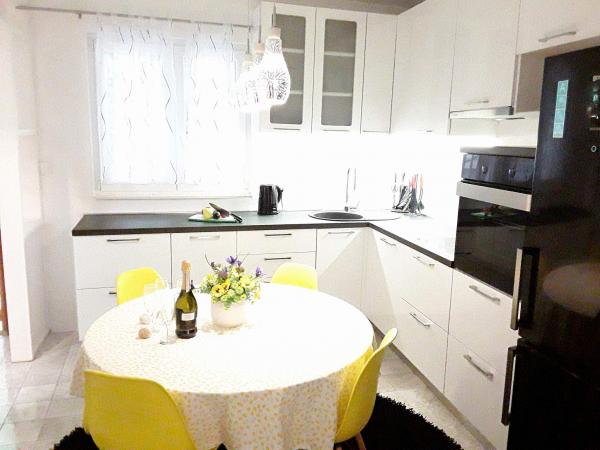 Nous avons passé deux semaines chez Kety et sa belle famille. Hébergement - belle, confortable, propre. Super équipement: trois salles de bains, lave-linge, lave-vaisselle, climatisation, grande terrasse et long balcon donnant sur la mer et le coucher du soleil. Derrière nous se trouvait une vue sur la montagne de Biokovo, également une expérience. Juste en dessous de la maison se trouve la mer - l’accès se faisait à l’échelle ou au saut. Nous sommes également allés avec des petits enfants ici: 5 et 3 ans. A 3 minutes de l'hébergement se trouve la plage de Bratuši, qui est plus petite, moins d'arbres, une seule reštika. Voici une large plage, des arbres, des restaurants, des magasins, des glaces, une boulangerie. Il y avait aussi des attractions pour les enfants. Plus propre, chaud, même la plongée avec tuba, la plongée avec les enfants, beaucoup d'attractions pour les adultes aussi. Une promenade d'une heure à travers la forêt de pins se trouve à Baška Voda, une belle promenade. Il est possible de faire du vélo ou à pied. Nous avons marché, même avec la poussette. D'autre part, vous pouvez rejoindre Makarska via le port avec de magnifiques yachts. Family Beros est génial, chaque fois que nous avons besoin de quelque chose, nous aimons aider avec tout. Et nous les avons ennuyés un jour. Nous étions avec 3 enfants: 10 et 5 ans et 4 mois. Nous avions le plus grand appartement pour 10 personnes avec 4 chambres, alors d'autres membres de la famille étaient avec nous. Mon mari a eu un anniversaire, Kety portait un beau gâteau au chocolat, on ne s'y attendait pas. Deux fois, son père, Roko, a attrapé du poisson et diverses créatures et a préparé un vrai dîner croate. C'était incroyable Nous vous recommandons tous les dix! Les meilleures vacances en Croatie depuis des années. Je veux revenir ici. Roko, Kety, merci!
