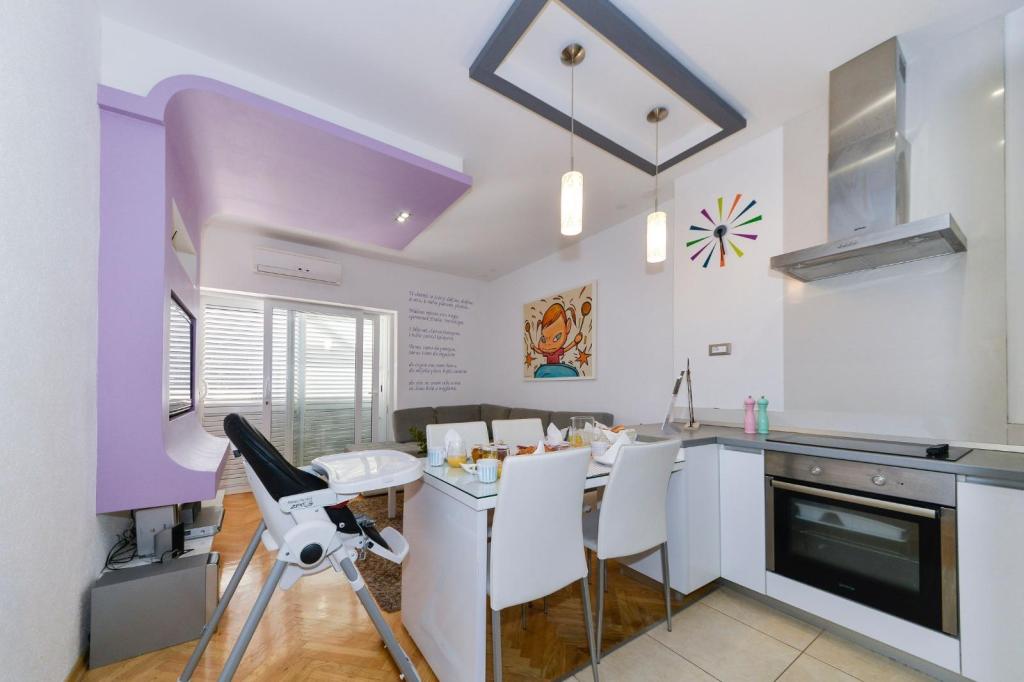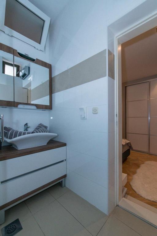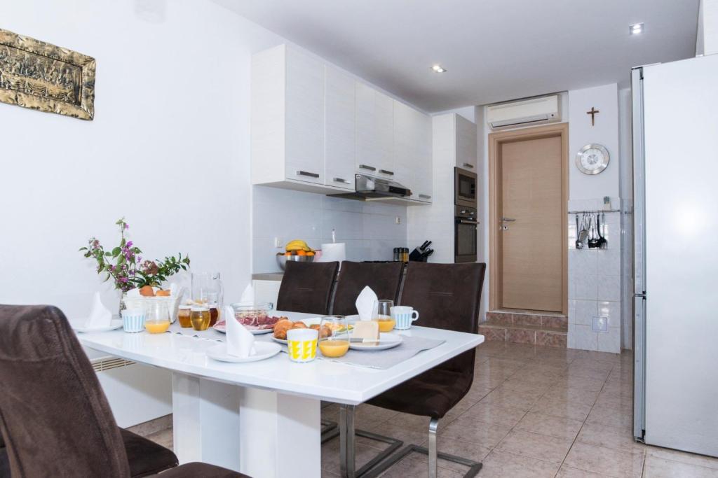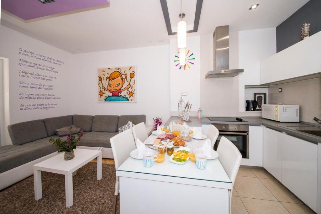 Nous proposons un hébergement dans notre maison à Promajna sur la côte de Makarska. Promajna se trouve à environ 6 km de Makarska et, hors saison, environ 250 habitants vivent dans la ville. Dans la ville elle-même, il y a une belle et grande plage avec de petits galets et d'immenses pins pour ceux qui aiment s'asseoir à l'ombre, et à l'ouest de la ville il y a plusieurs plages plus petites, plus belles et plus calmes. Promajna est un endroit idéal pour des vacances tranquilles en famille, pour profiter de la mer limpide et de merveilleuses promenades nocturnes. Notre maison se trouve à environ 300 mètres de la mer et la route que vous empruntez jusqu'à la mer se termine exactement à l'endroit où la plage principale rejoint les petites plages à l'ouest.