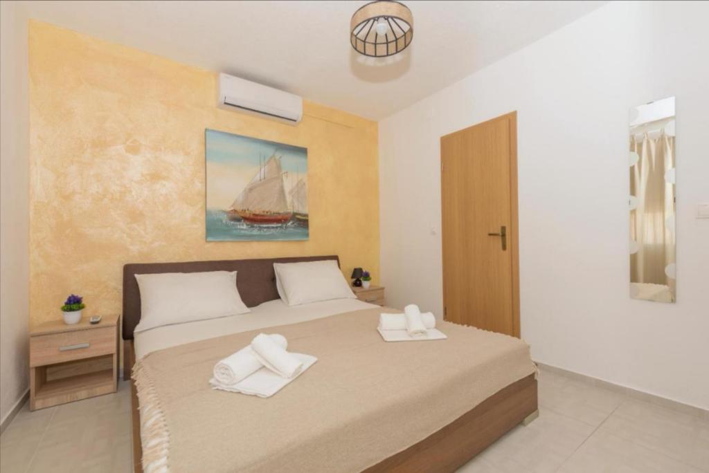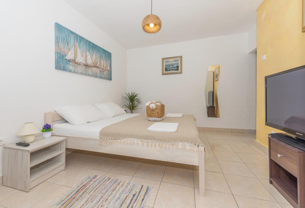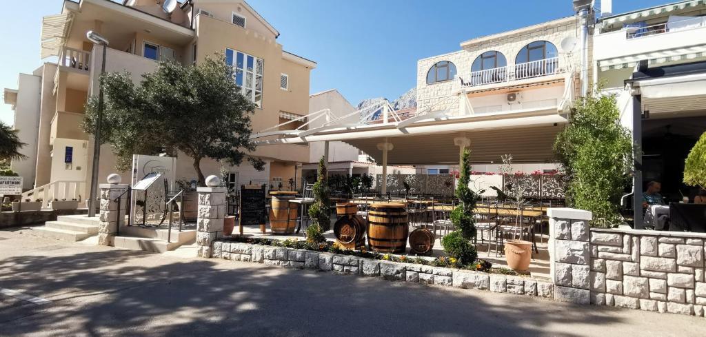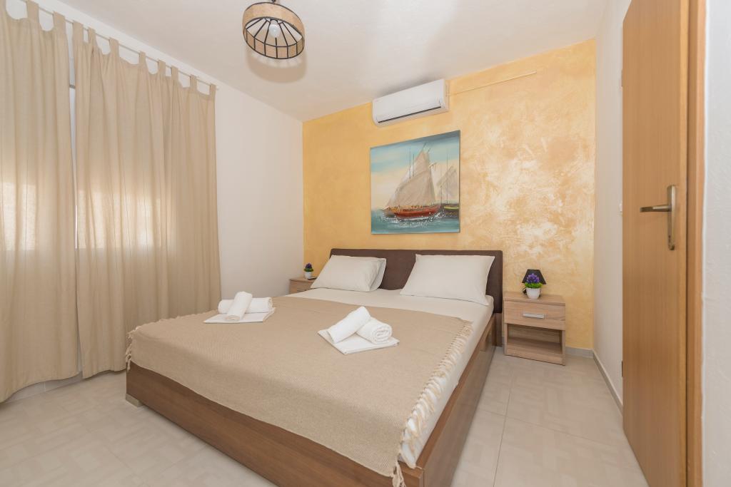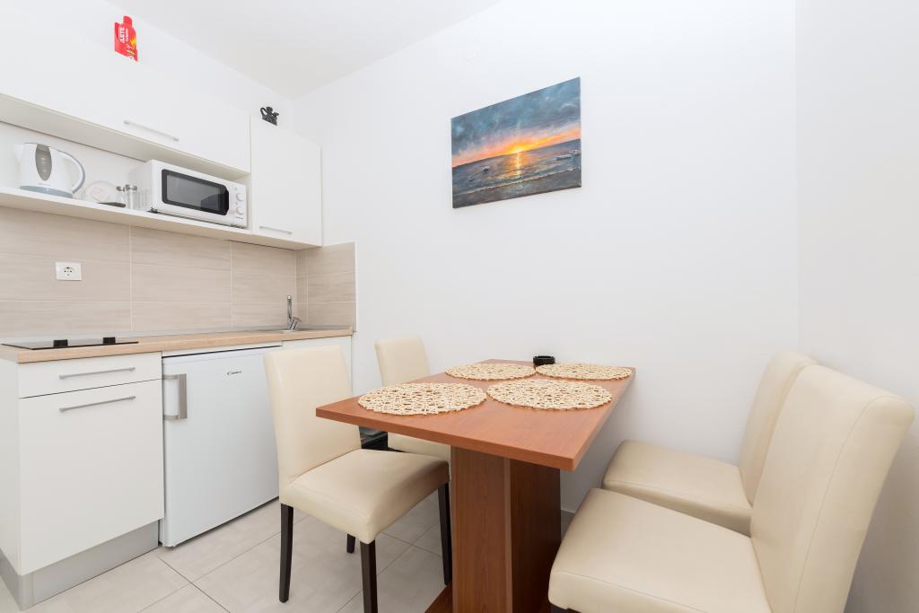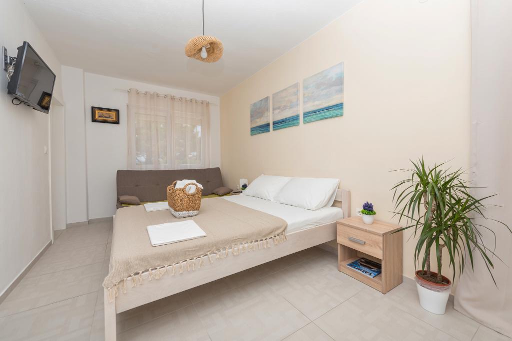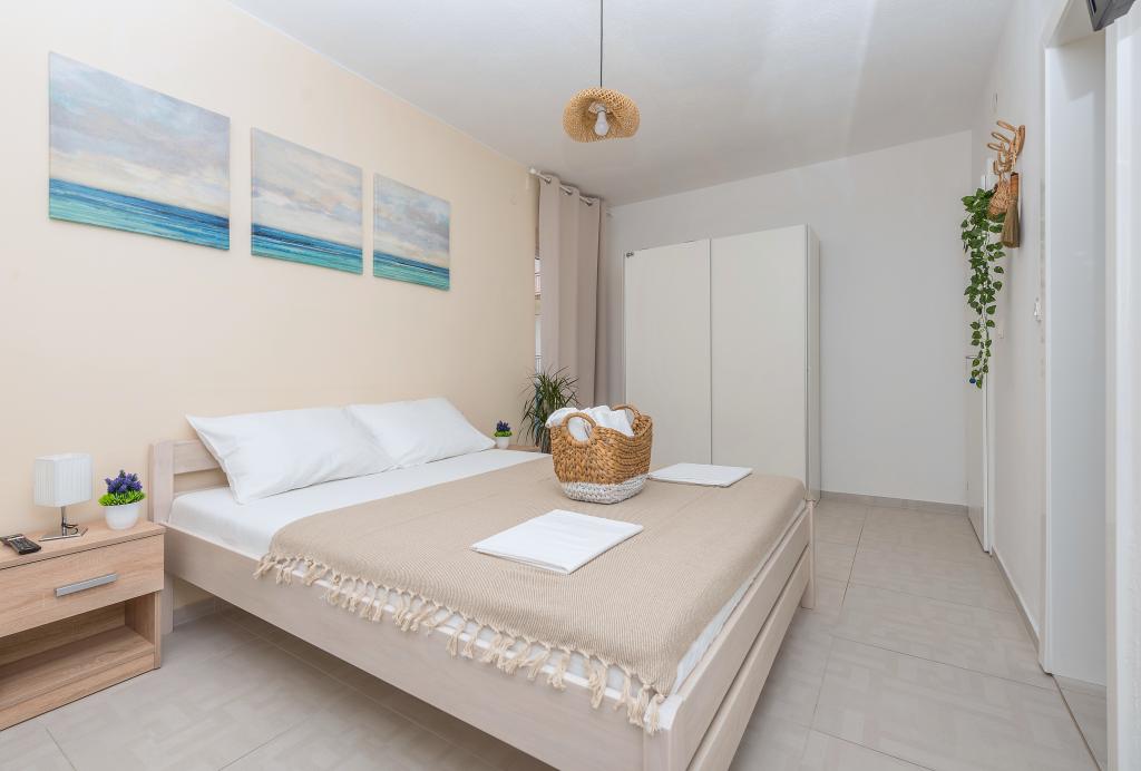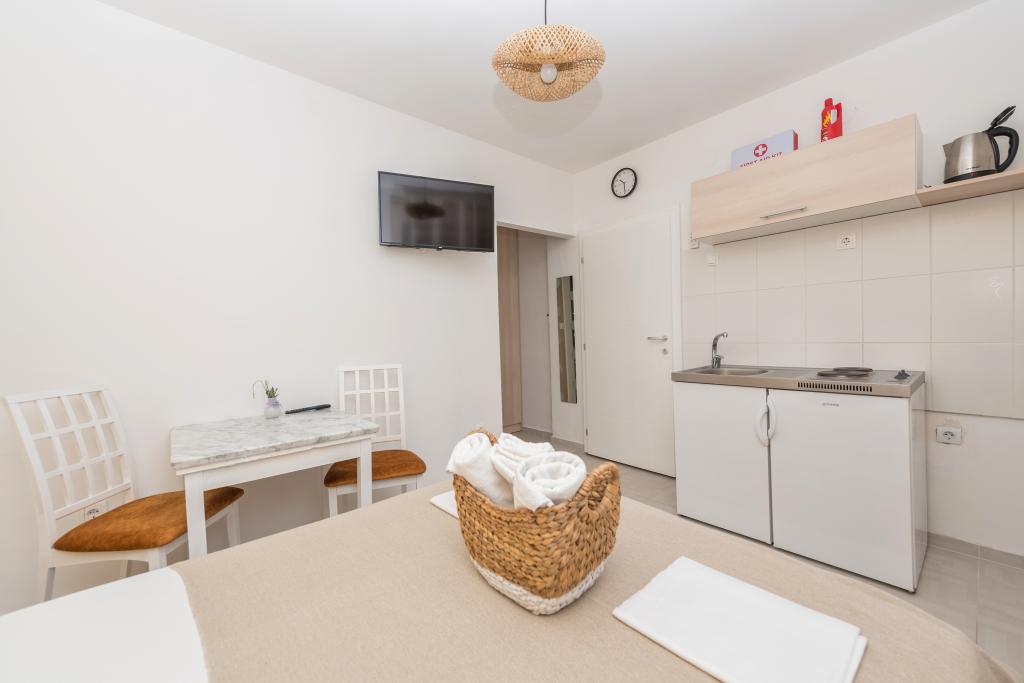 Les appartements sont situés à Promajna, un magnifique petit endroit idéal pour les vacances. L'établissement est situé dans la première rangée de la mer au milieu d'une plage publique qui regorge d'ombre naturelle (pin). Au sein de l'établissement, nous avons un restaurant qui propose un menu du jour abordable et une large gamme de plats à la carte. Les appartements sont entièrement équipés et prêts pour vos vacances de rêve.