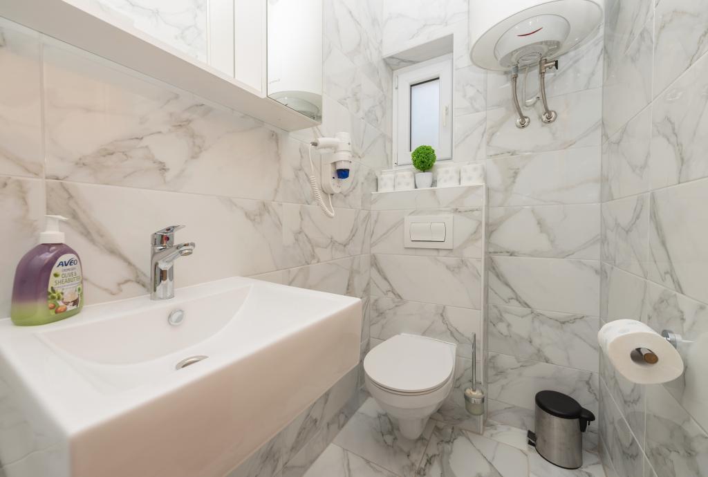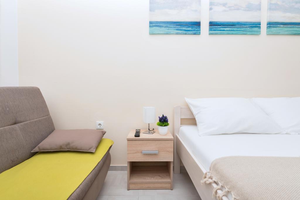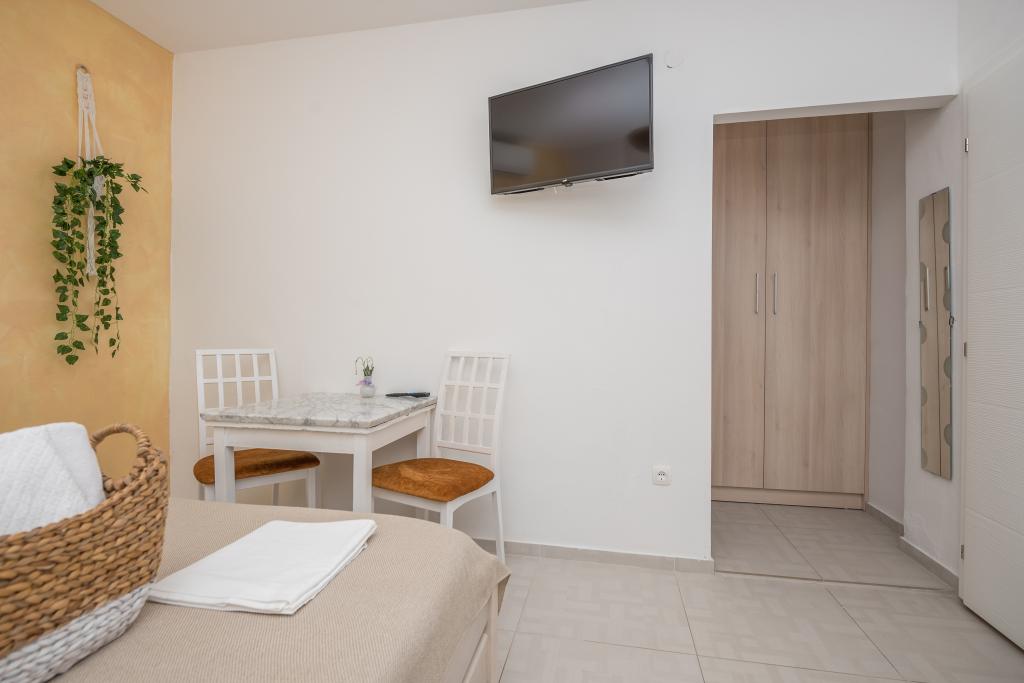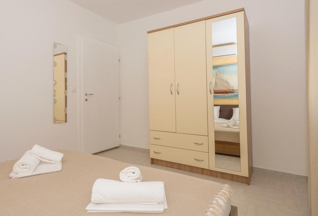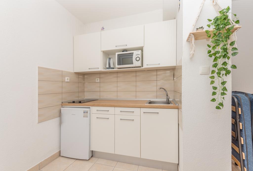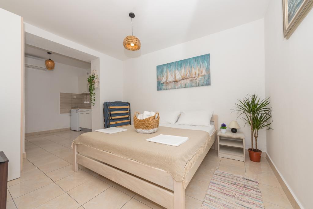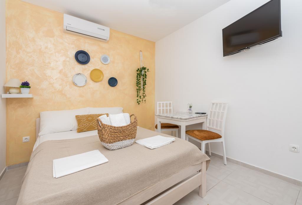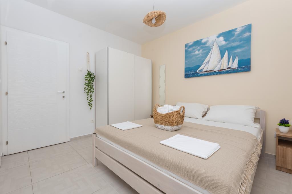 Les appartements sont situés à Promajna, un magnifique petit endroit idéal pour les vacances. L'établissement est situé dans la première rangée de la mer au milieu d'une plage publique qui regorge d'ombre naturelle (pin). Au sein de l'établissement, nous avons un restaurant qui propose un menu du jour abordable et une large gamme de plats à la carte. Les appartements sont entièrement équipés et prêts pour vos vacances de rêve.