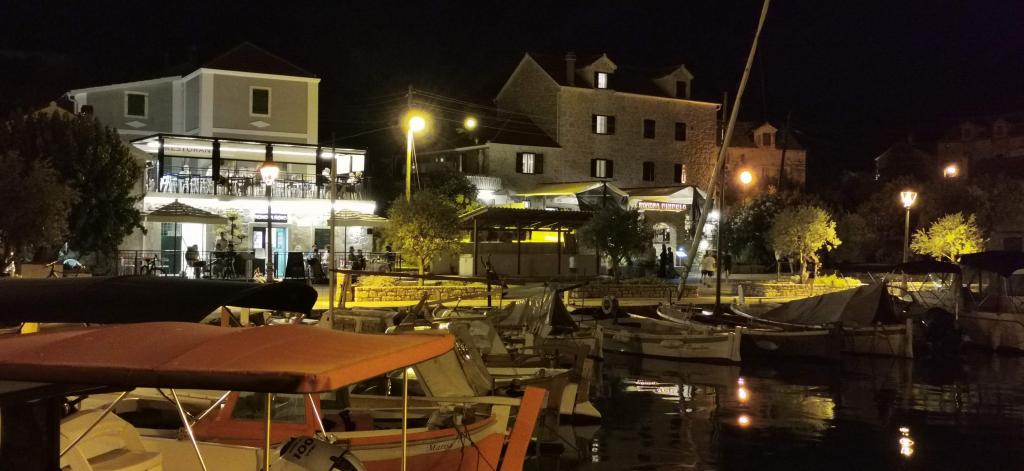 L'établissement bénéficie d'un emplacement idéal, à seulement une minute à pied de la mer et de la plage. Une douche extérieure est disponible devant l'appartement. Les appartements sont situés au rez-de-chaussée d'une maison familiale, face à la mer, et disposent de vastes cours couvertes. Entourés de verdure et protégés du soleil toute la journée, ils offrent un confort optimal pour y séjourner et y dormir. Nous serons heureux de vous conseiller sur les produits insulaires à acheter à Prvić, comment se rendre aux parcs nationaux de Krka et des Kornati, où louer un bateau, les incontournables de Prvić, Vodice et Šibenik, ainsi que sur les horaires, les tarifs et les départs de la ligne régulière Jadrolinija reliant Prvić à Vodice et Šibenik.