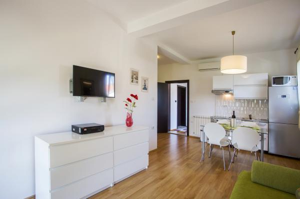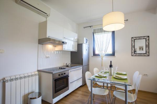 Salutation, Nos appartements sont situés à Stinjan, un lieu touristique populaire mais calme, à seulement 4 km du centre de Pula et à 2 km du parc national de Brijuni, un parc national. Brijuni sont de belles îles avec un parc safari, des empreintes de dinosaures, un parcours de golf, une nature magnifique et des plages. Près de nos appartements il y a des magasins, des bars, des restaurants. N'hésitez pas à nous contacter pour toute information;)