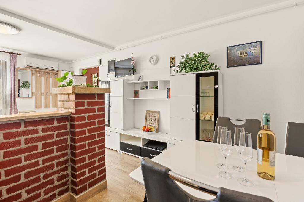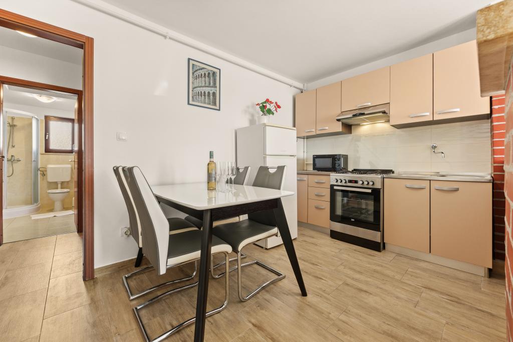 Dans un quartier calme de Pula, vous trouverez des appartements idéalement situés à proximité de la mer et des complexes touristiques, et à quelques pas de la vieille ville. Ces appartements soignés et confortables sont entièrement équipés pour vous garantir des vacances paisibles et reposantes. Chaque appartement dispose d'une terrasse privative. La proximité de la station de transports en commun vous permettra d'éviter la foule et de vous déplacer facilement sans voiture, grâce à la place de parking gratuite mise à votre disposition. Nous restons à votre disposition pour toute question. Nous nous réjouissons de votre arrivée !