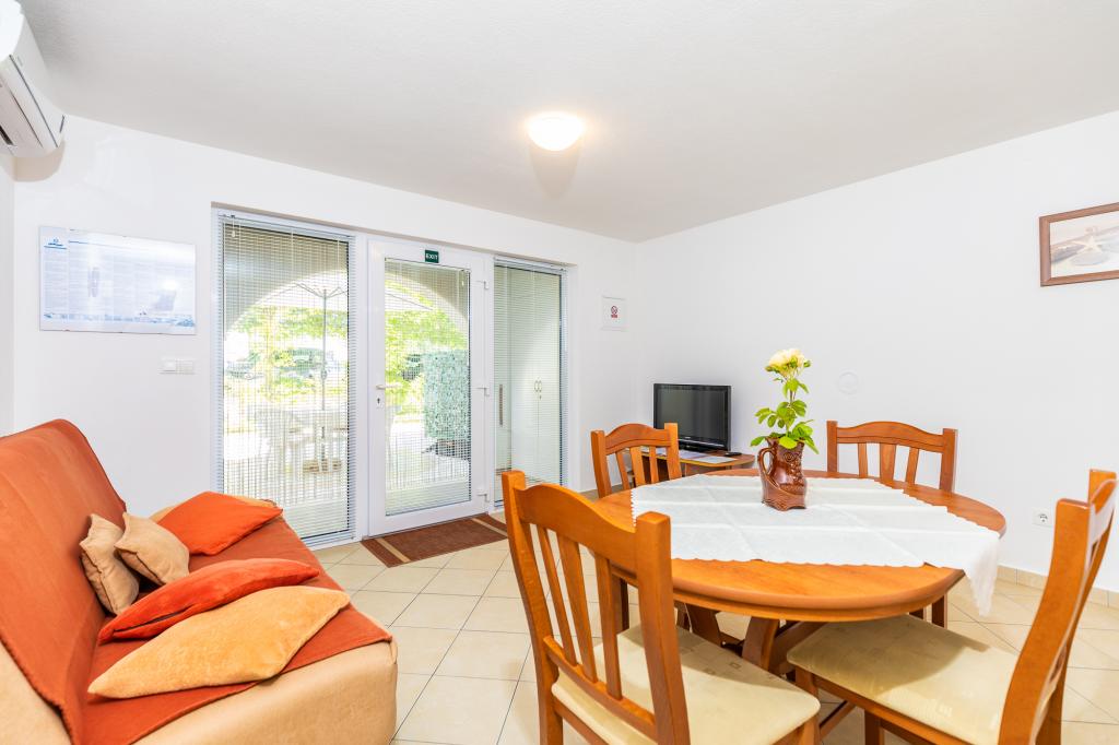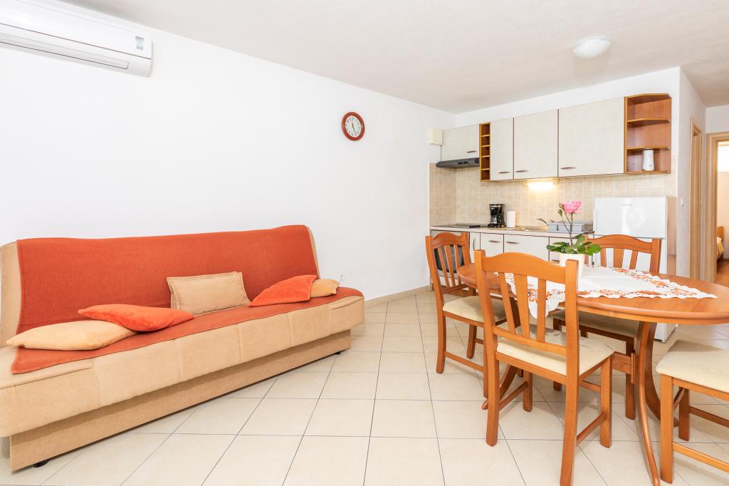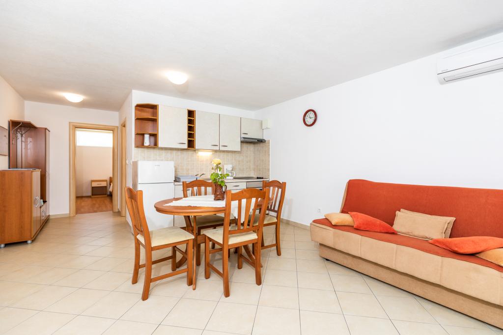 Appartement pour 2 à 4 personnes dans un quartier calme de Punat sur l'île de Krk. Internet WI-FI, télévision par satellite et climatisation sont disponibles dans l'appartement. Proximité de toutes les commodités : plage, commerces, restaurants, centre Place de parking sécurisée et ombragée